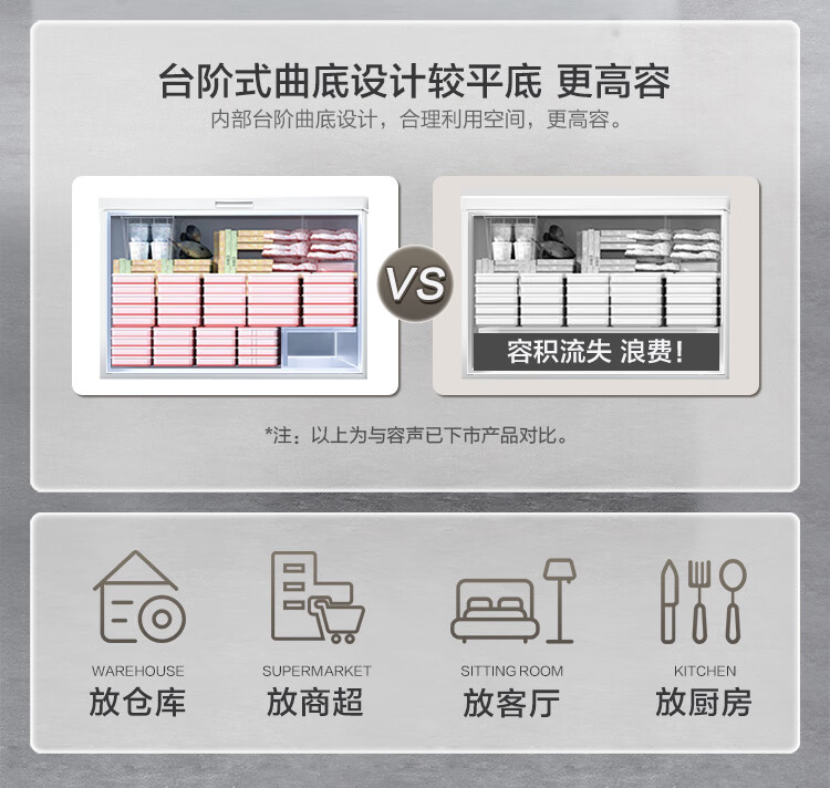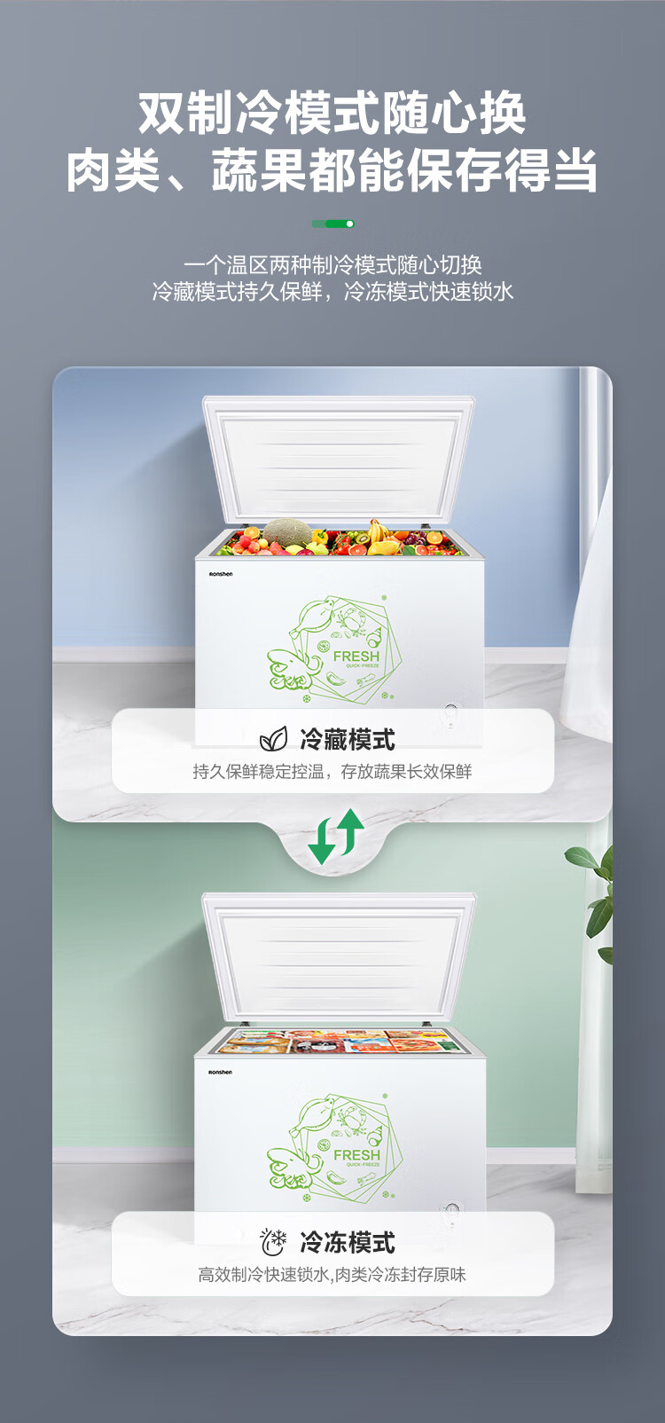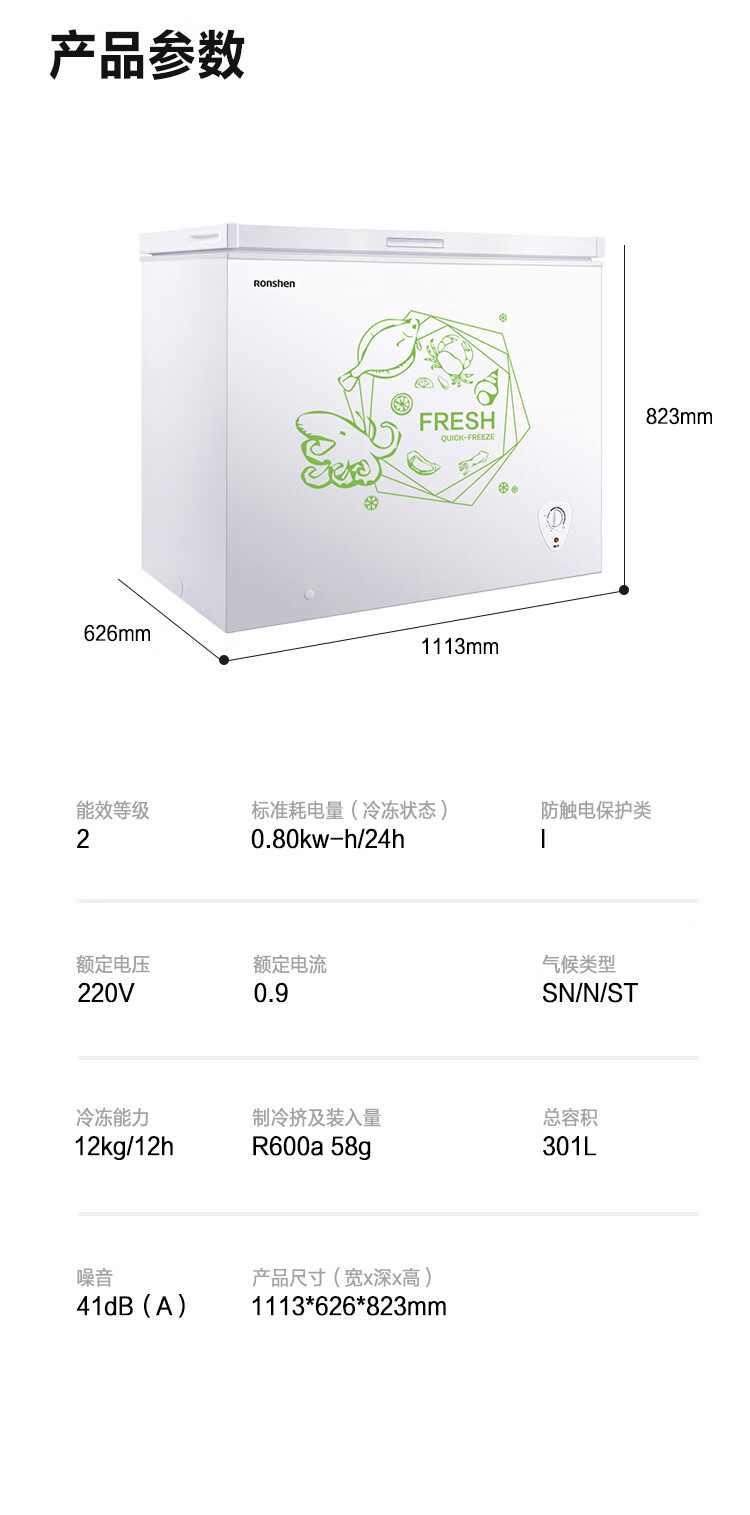容声(Ronshen) 301升 大容量冰柜 家商两用 冷藏冷冻转换 单温冷柜 厨房雪糕冰箱 大冷冻力BD/BC-301MA