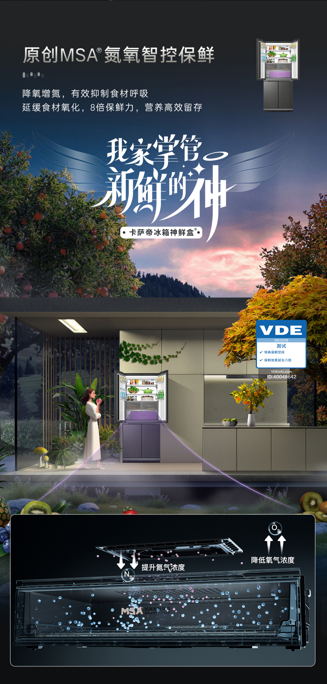 卡萨帝冰箱BCD-530WGCTDAGGWU1 原创平嵌|MSA氮氧智控|智慧动态除菌净化自动制冰机|-30°C+深冷智冻|智能WIFI