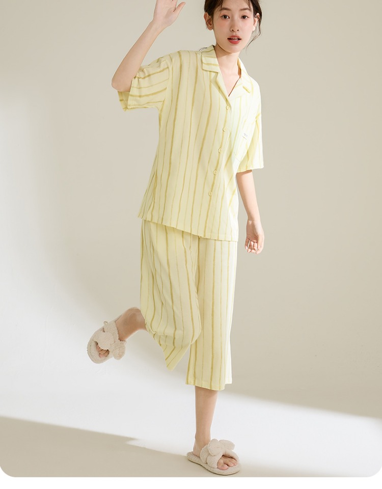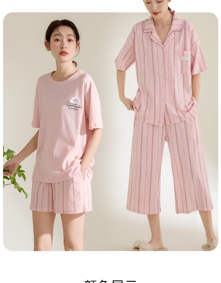 康妮雅女式短袖中裤开襟套装