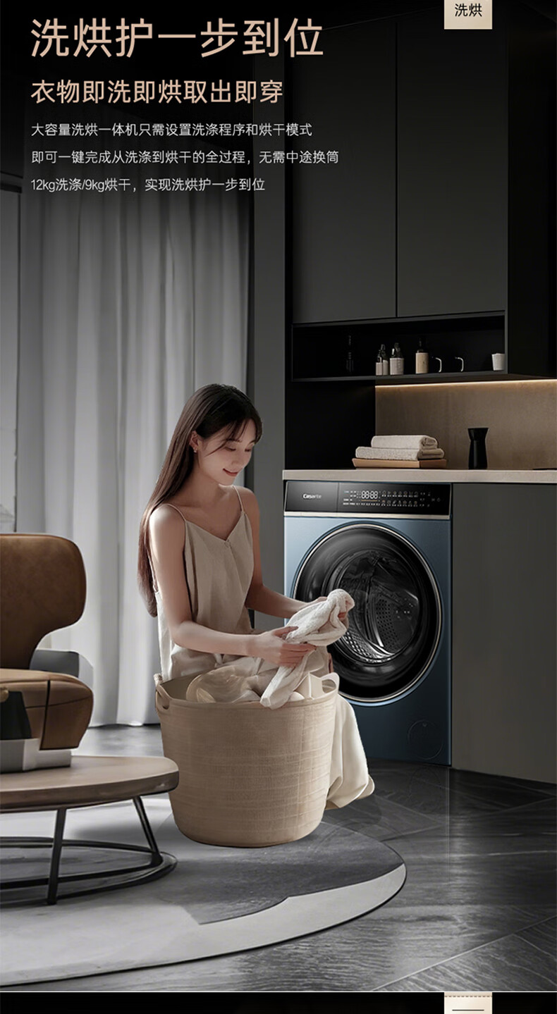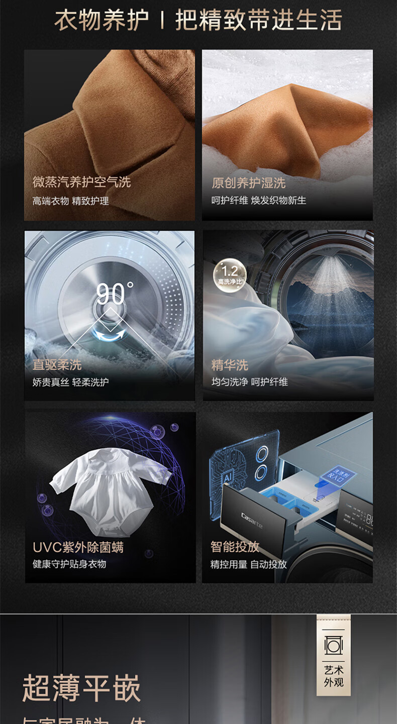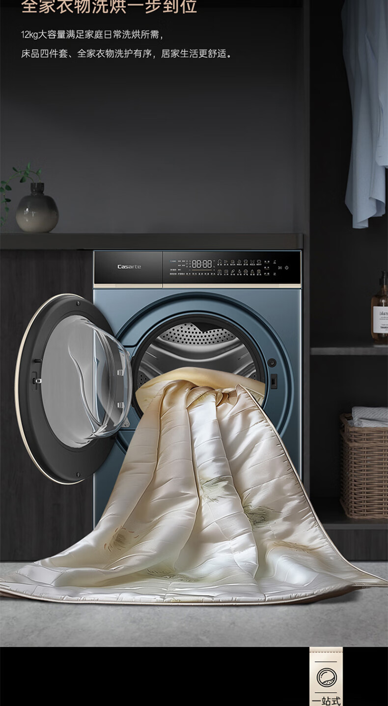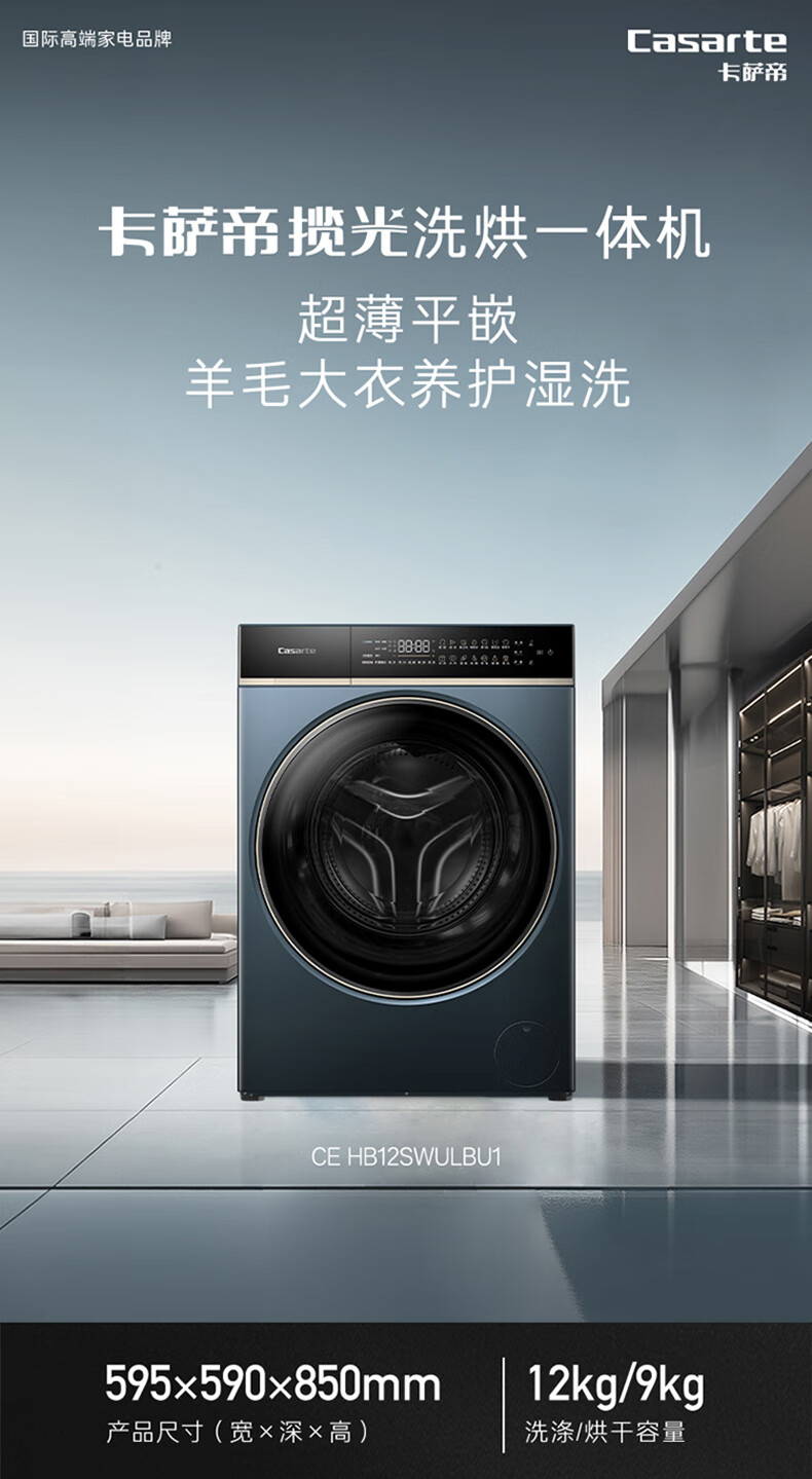 卡萨帝揽光超薄平嵌12公斤洗烘一体机12ULB 养护湿洗 微蒸汽养护空气洗 精华洗 UVC紫外除菌 揽光+12公斤洗烘