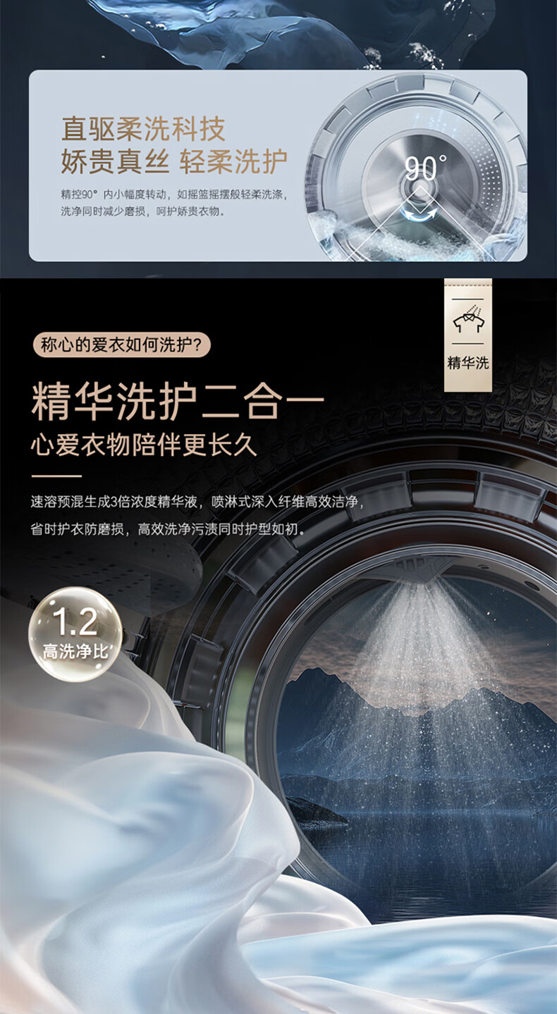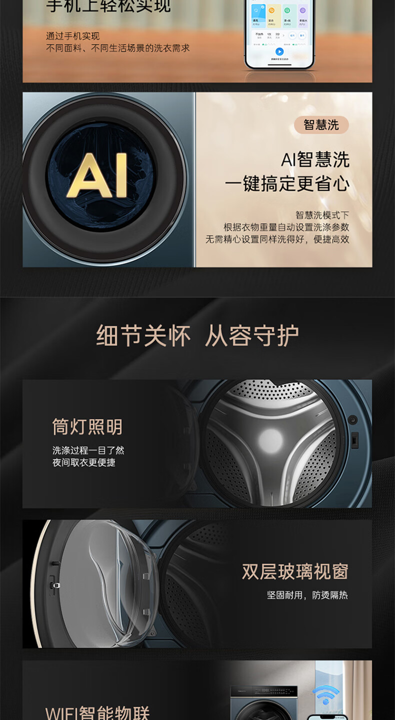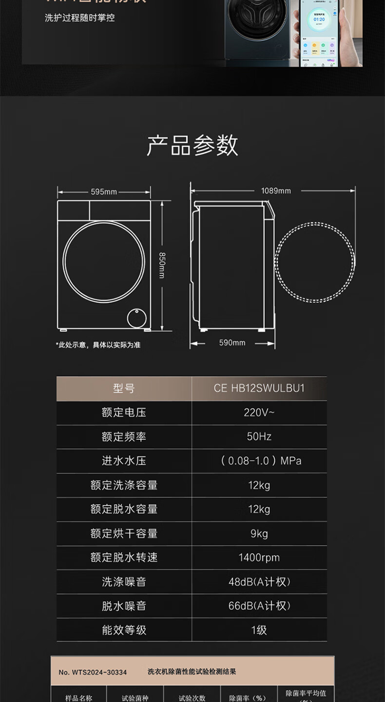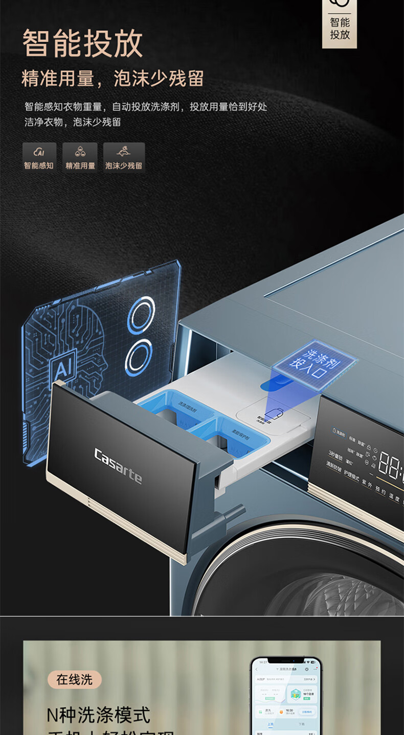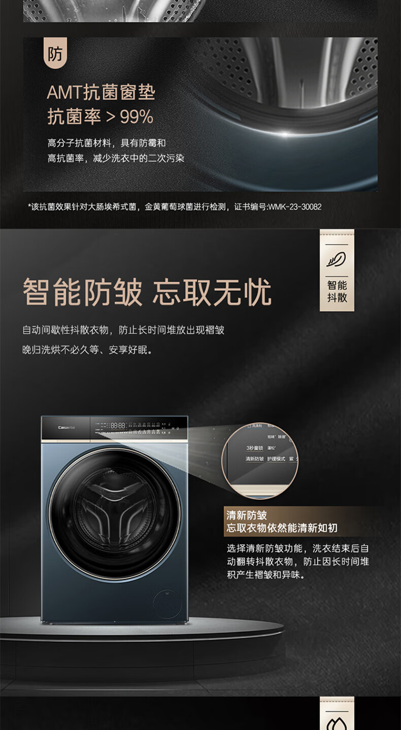 卡萨帝揽光超薄平嵌12公斤洗烘一体机12ULB 养护湿洗 微蒸汽养护空气洗 精华洗 UVC紫外除菌 揽光+12公斤洗烘