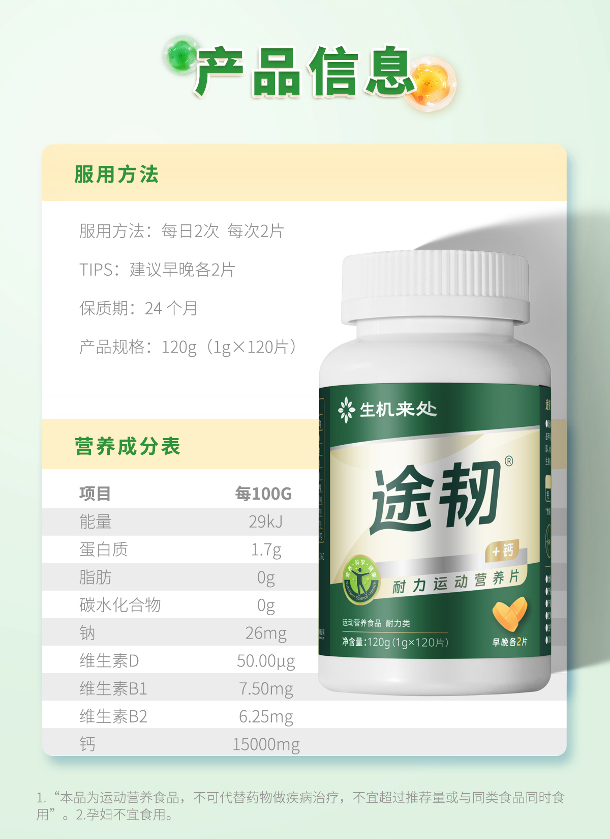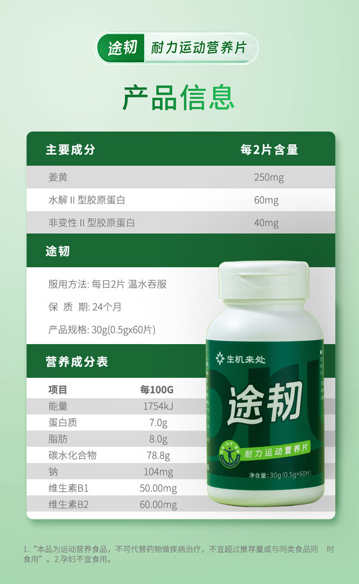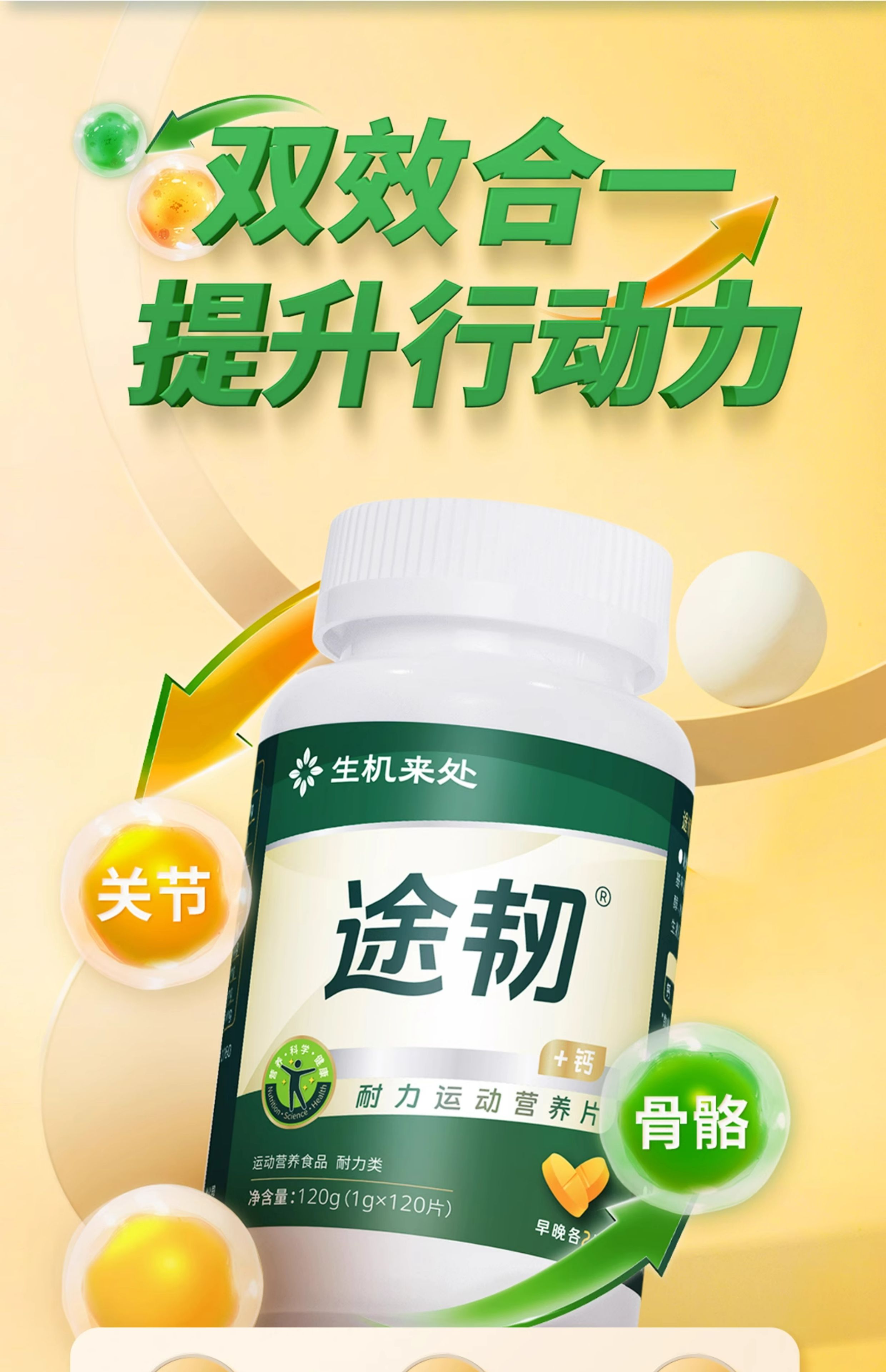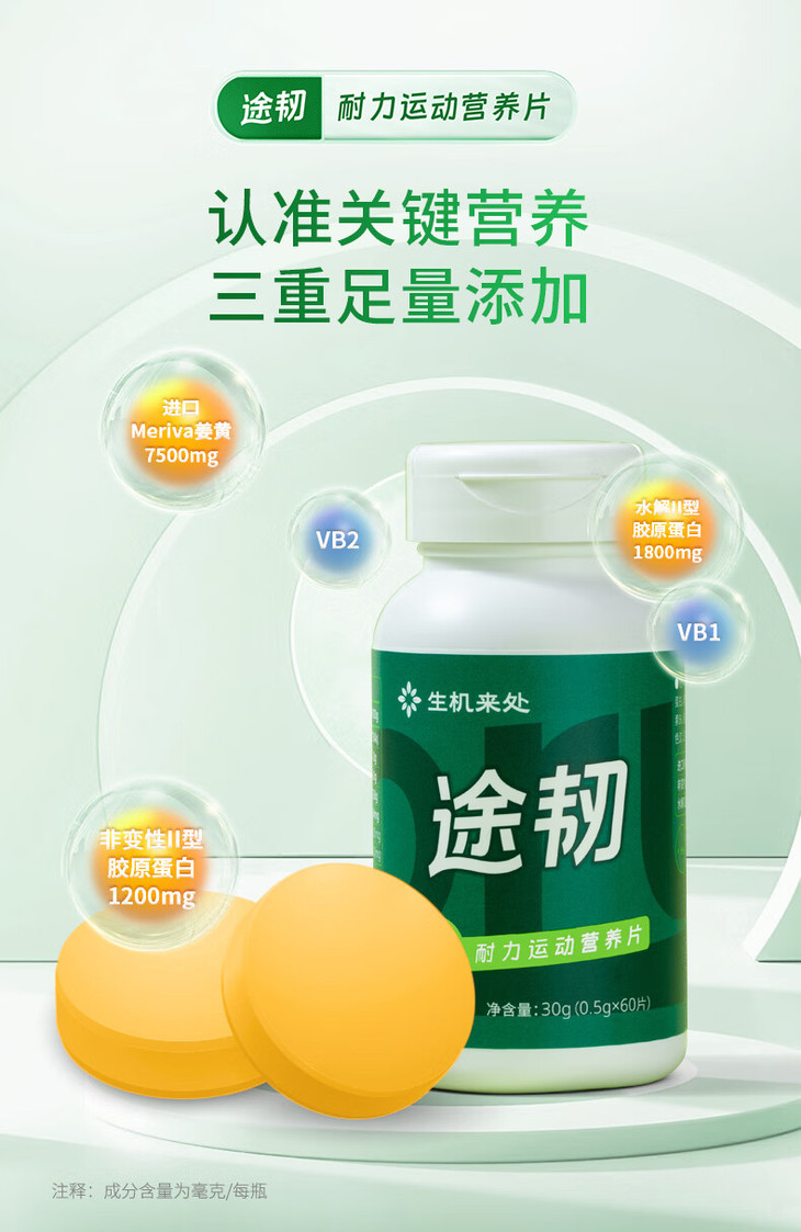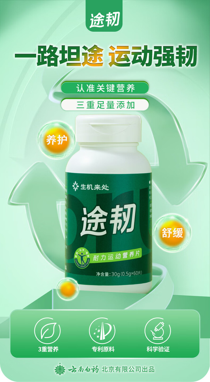 【官方正品】云南白药生机来处途韧耐力运动营养片专利配方加钙中老年养护关节