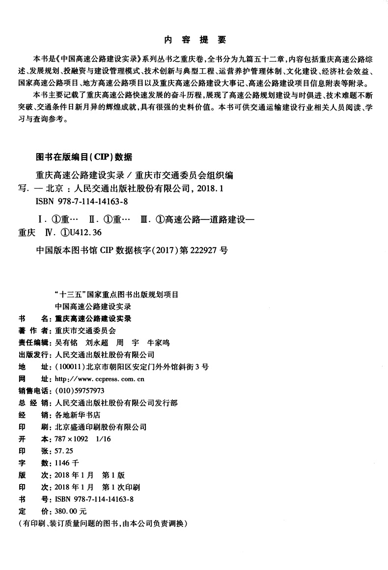书名:重庆高速公路建设实录 定价:380.0 ISBN:9787114141638 作者:重庆市交通委员会 版次:1 出版时间:2021-05 内容提要: