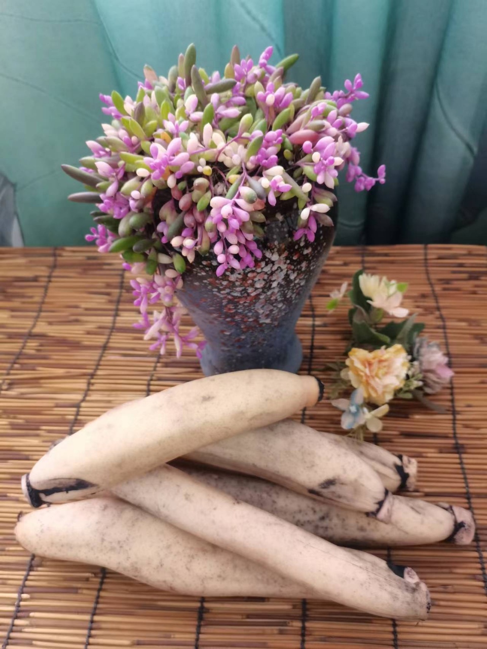 这个开红色花的莲藕,藕型细长,口感软、面、酥糯,营养价值特别高,清蒸甘甜、爆炒、糯米藕、炸藕夹、炸藕丸子、藕馅饺子、藕馅包子、煲汤,口各种烹饪都美味