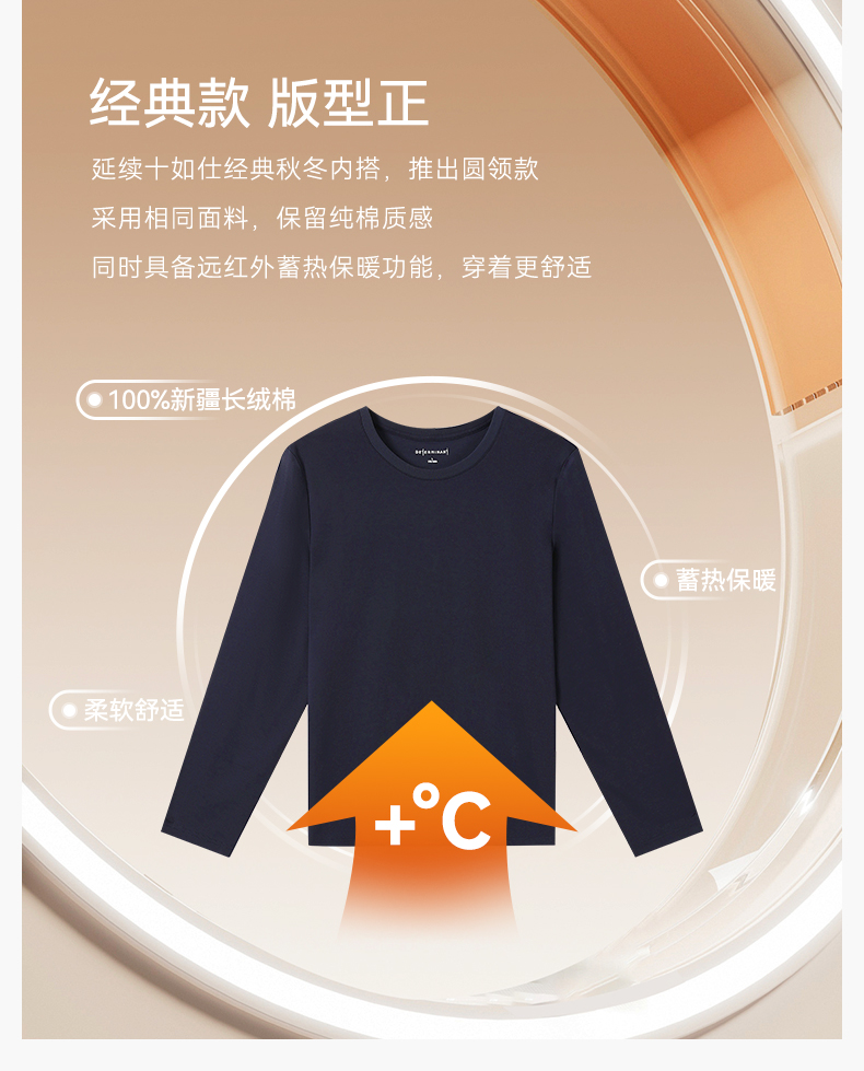 十如仕100%新疆长绒棉远红外整理保暖长袖T恤-T05-04