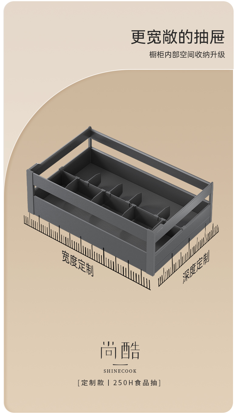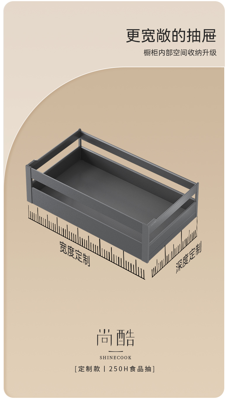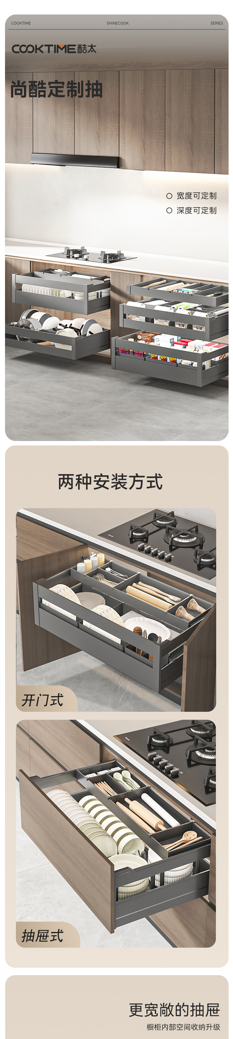 - 酷太坚持8年自主研发,已获得专利证书130项,拥有一套领先市场的厨房收纳系统,为千万中国家庭解决厨房脏乱差,缔造厨房新生活。