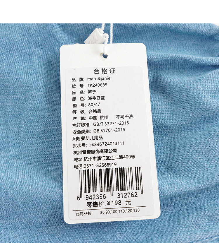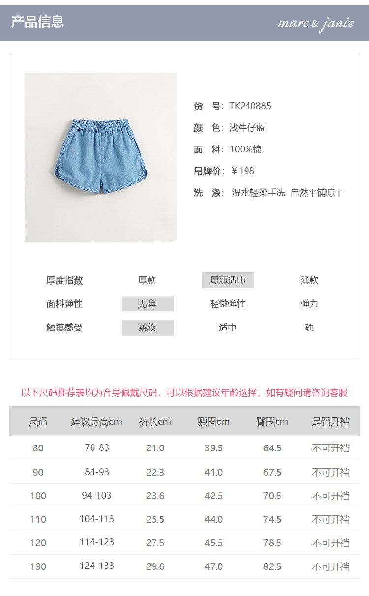 马克珍妮2024年夏装新款 女童纯棉花边腰牛仔短裤 240885