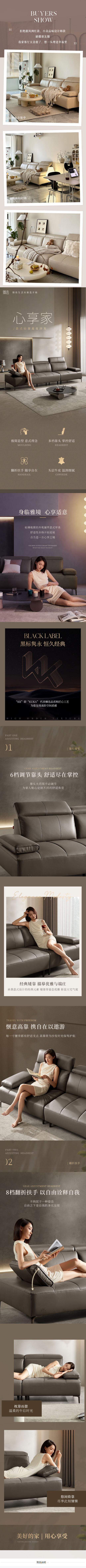顾家家居意式轻奢真皮沙发现代客厅可调靠头翻折扶手头层牛皮沙发1200无界
