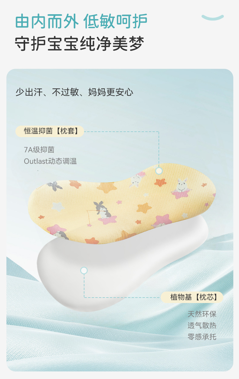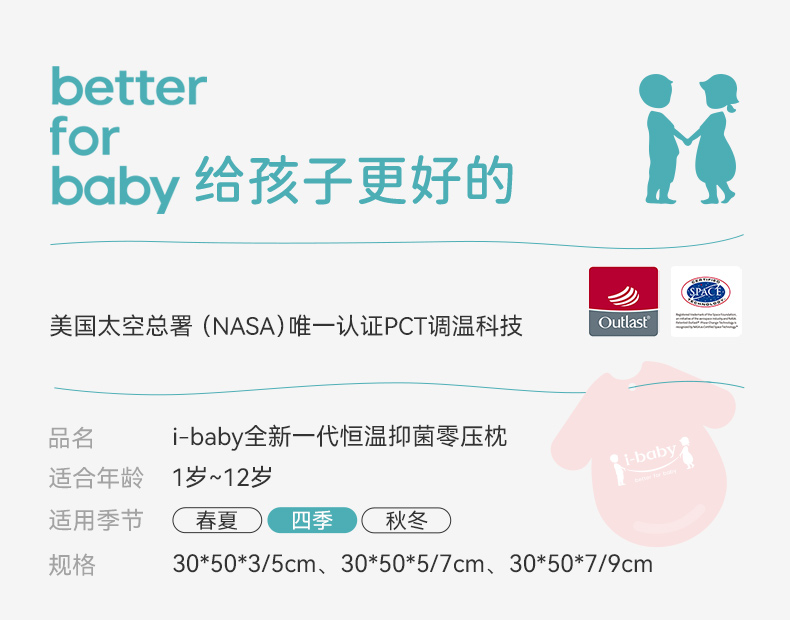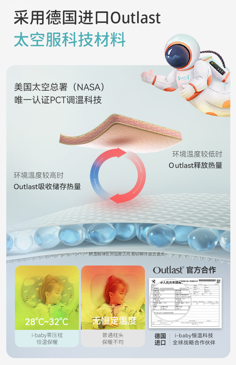 ibaby×outlast太空科技恒温/英伦宝贝婴儿枕头宝宝零压枕6个月-12岁婴儿枕头小学生