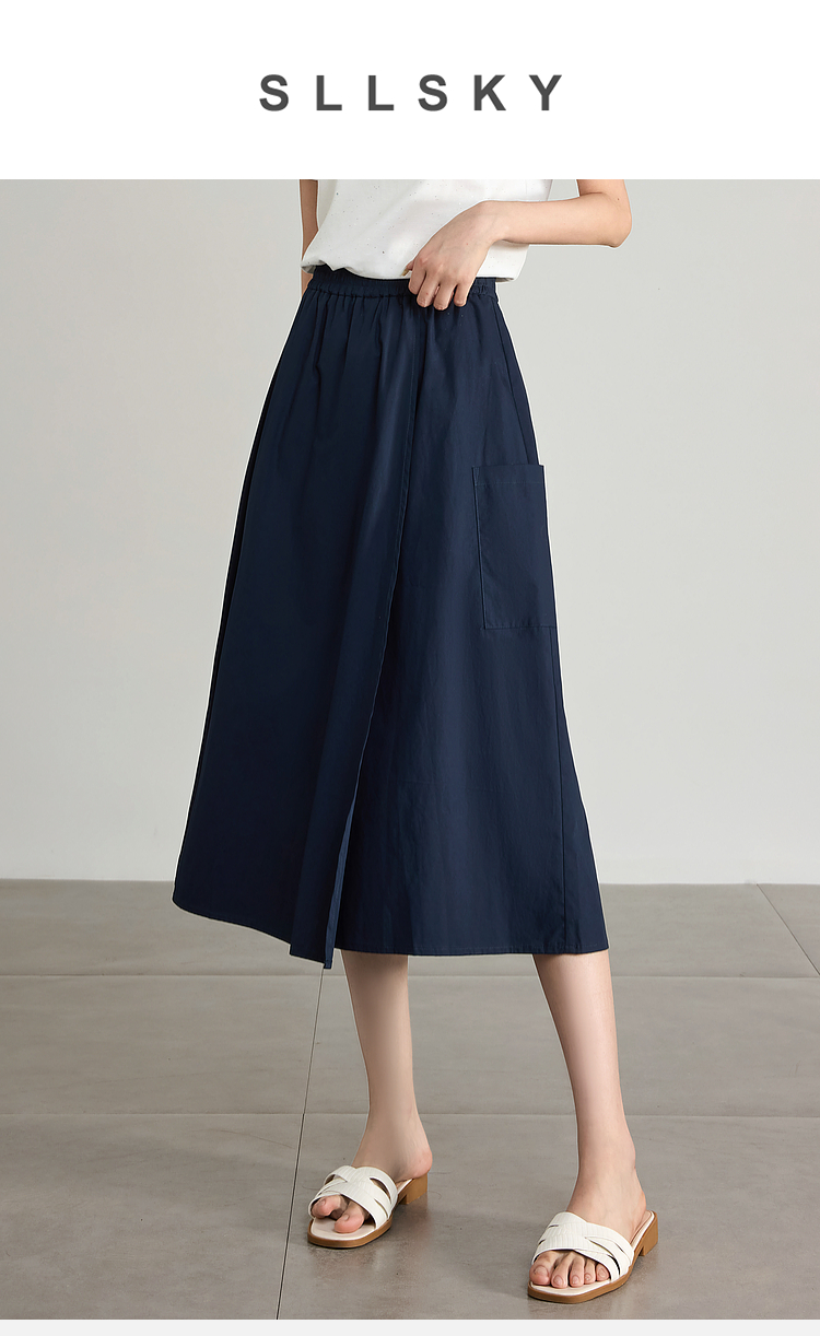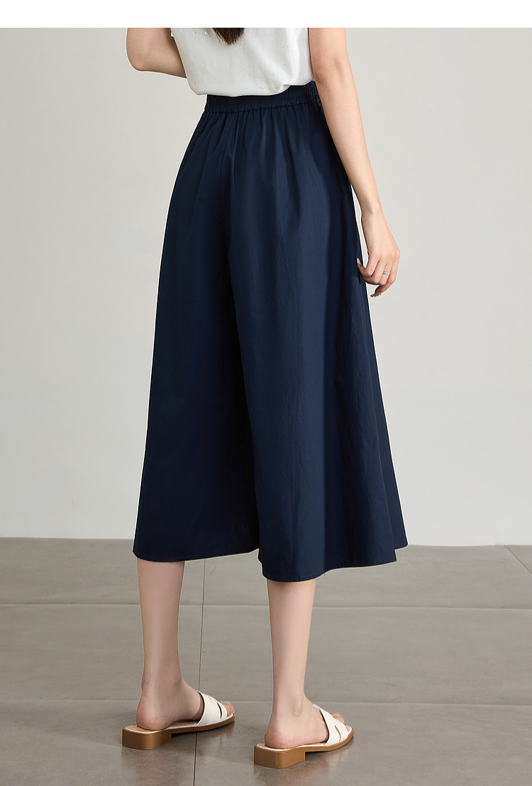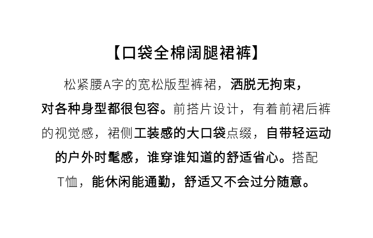 【专属特价】熙世界工装风八分休闲裤裙夏新款高腰口袋阔腿裤子全棉宽松裙裤