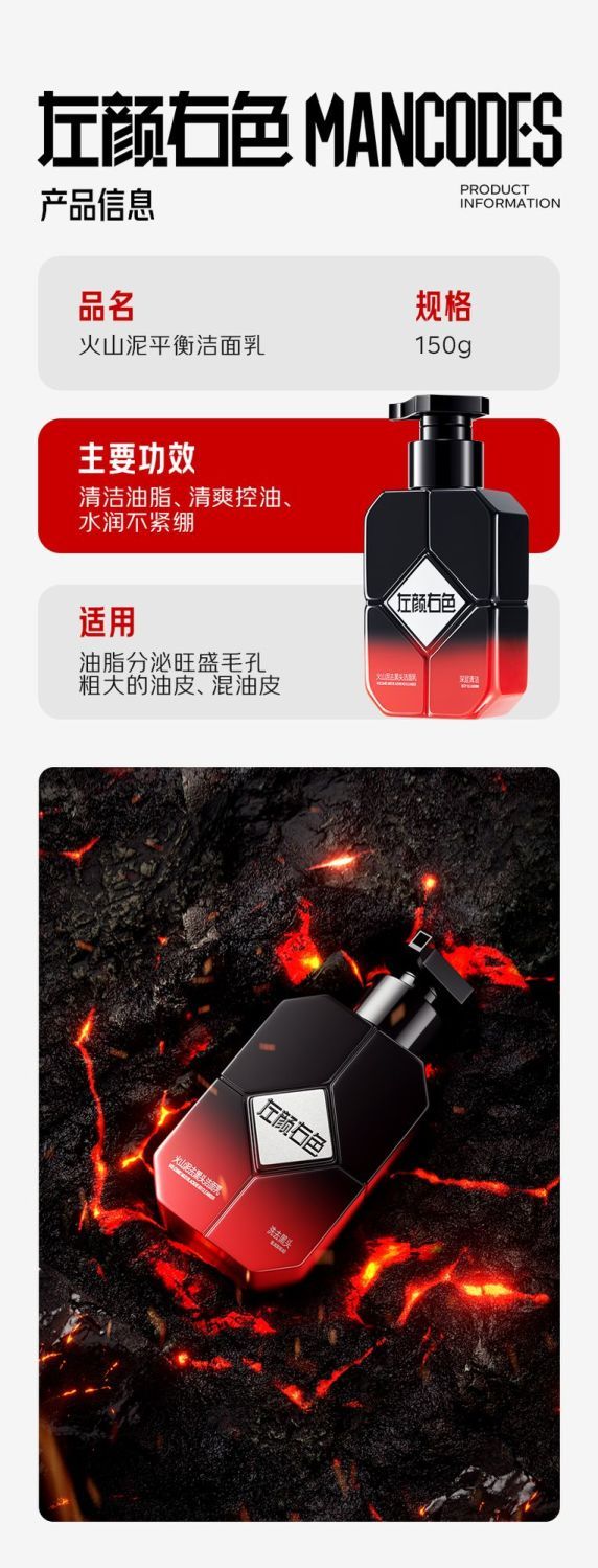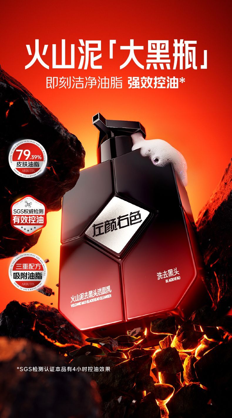 💥买即送‼冰川水💥秒杀‼【到手¥29.96/瓶】左颜右色 火山泥去黑头洁面乳 150g