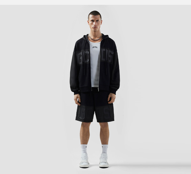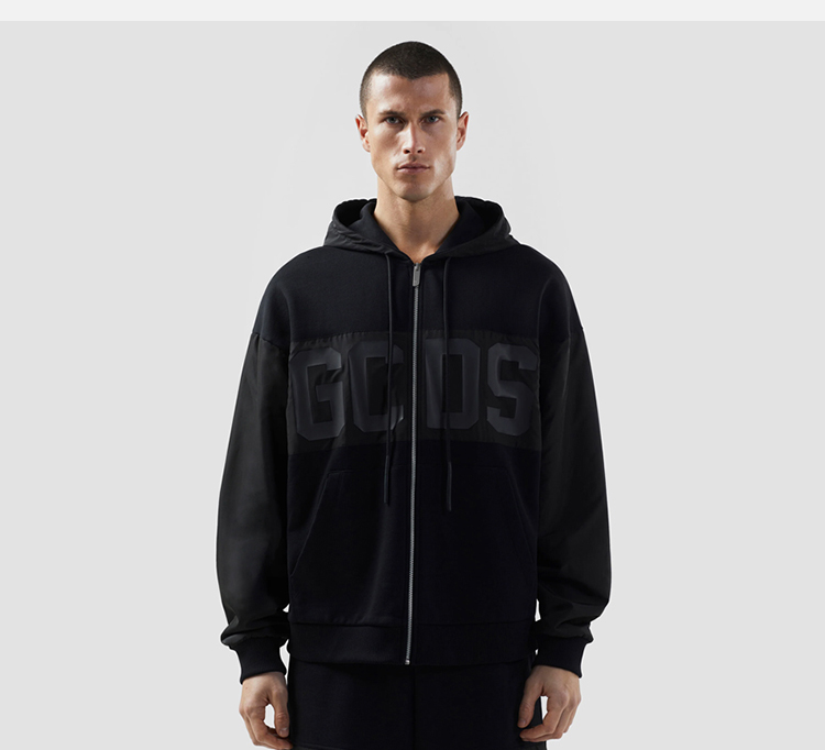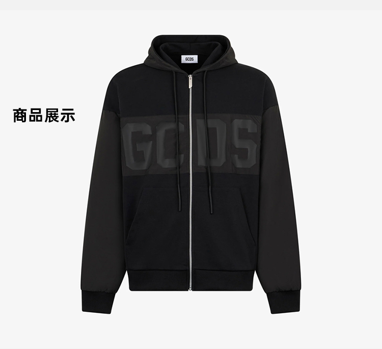 GCDS 男士字母徽标尼龙混合全拉链连帽休闲夹克外套 黑色 B1XM2001JI1 99