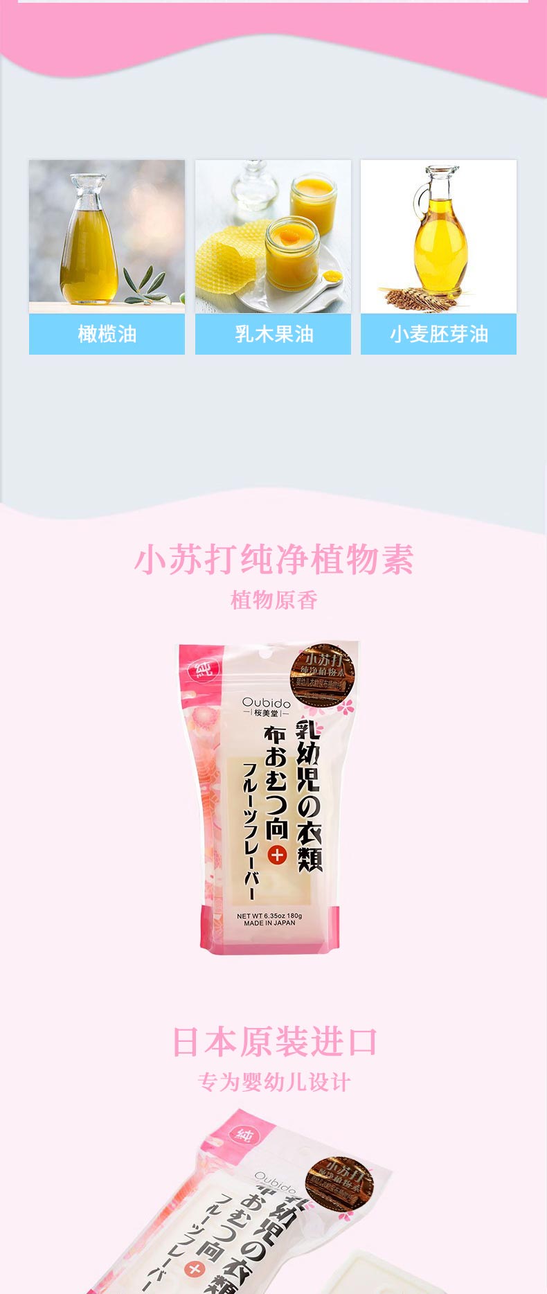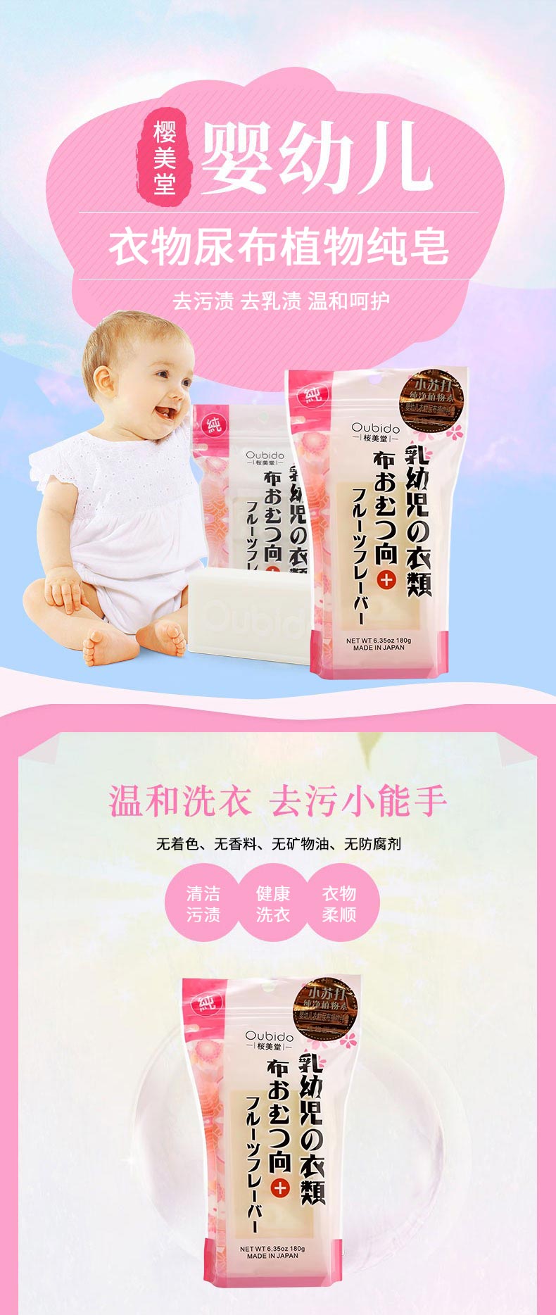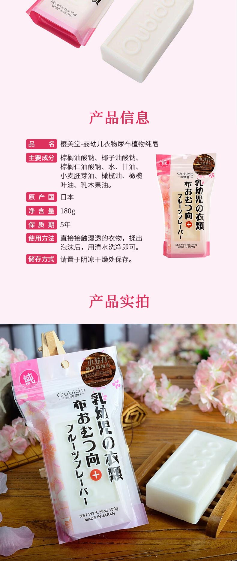 日本进口樱美堂婴幼儿衣物尿布植物纯皂180g