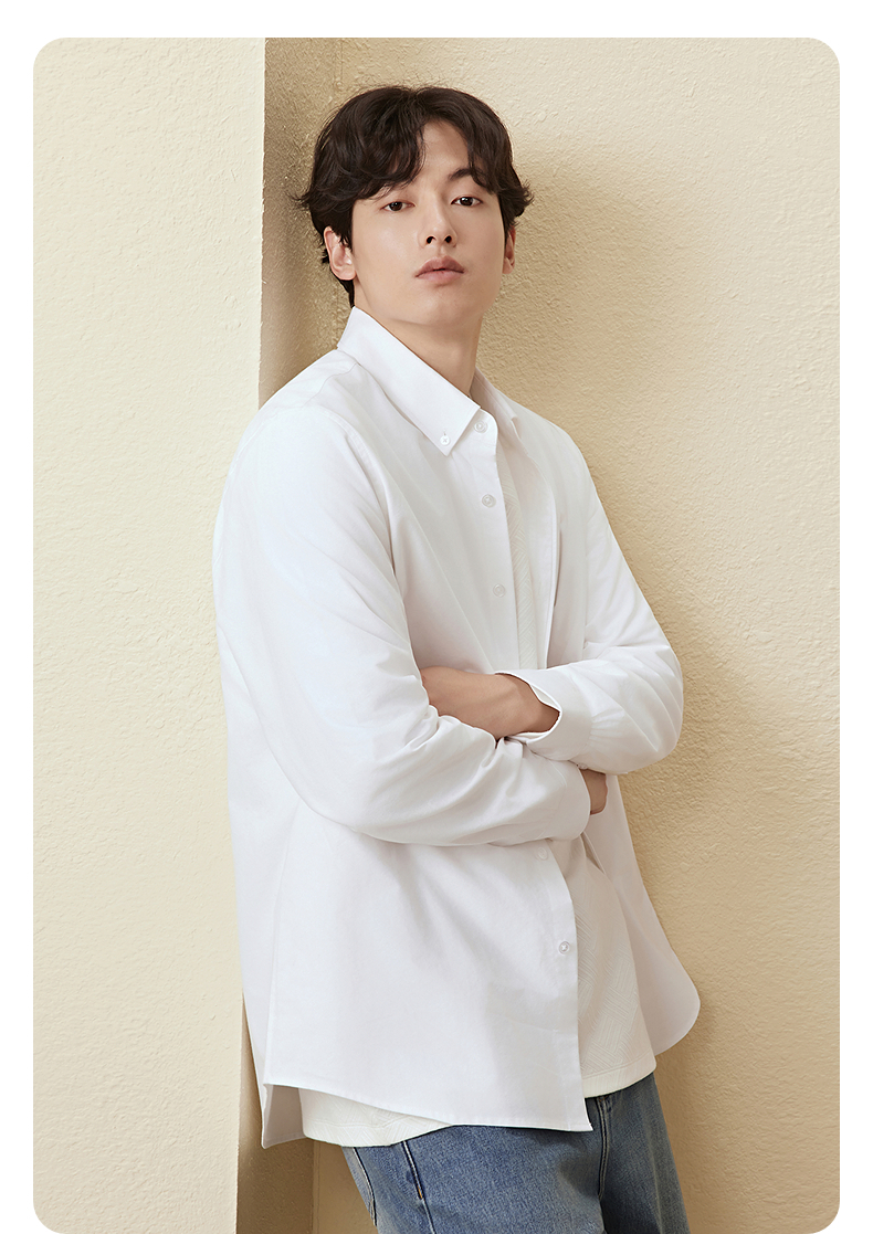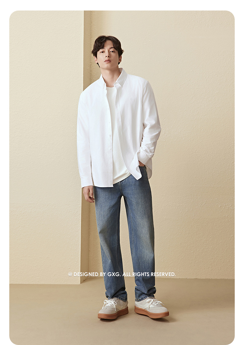 GXG男装 牛津纺肌理衬衫通勤商务衬衣亲肤简约上衣 2025秋季热卖
