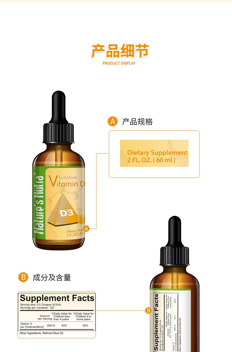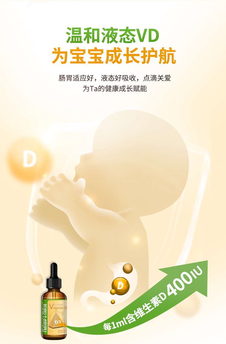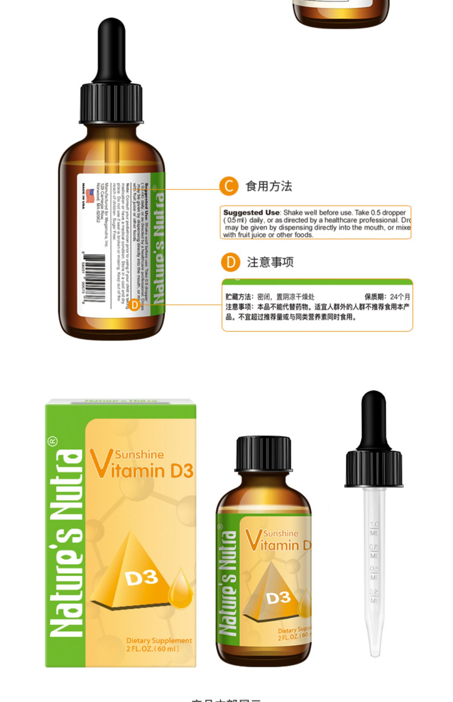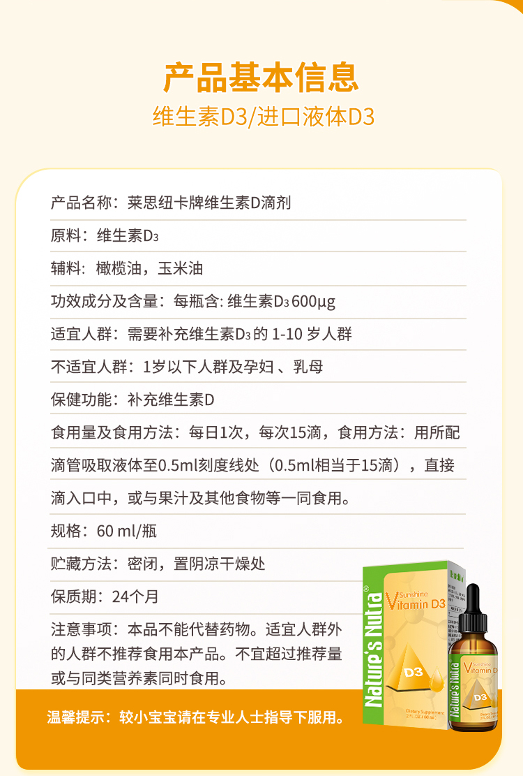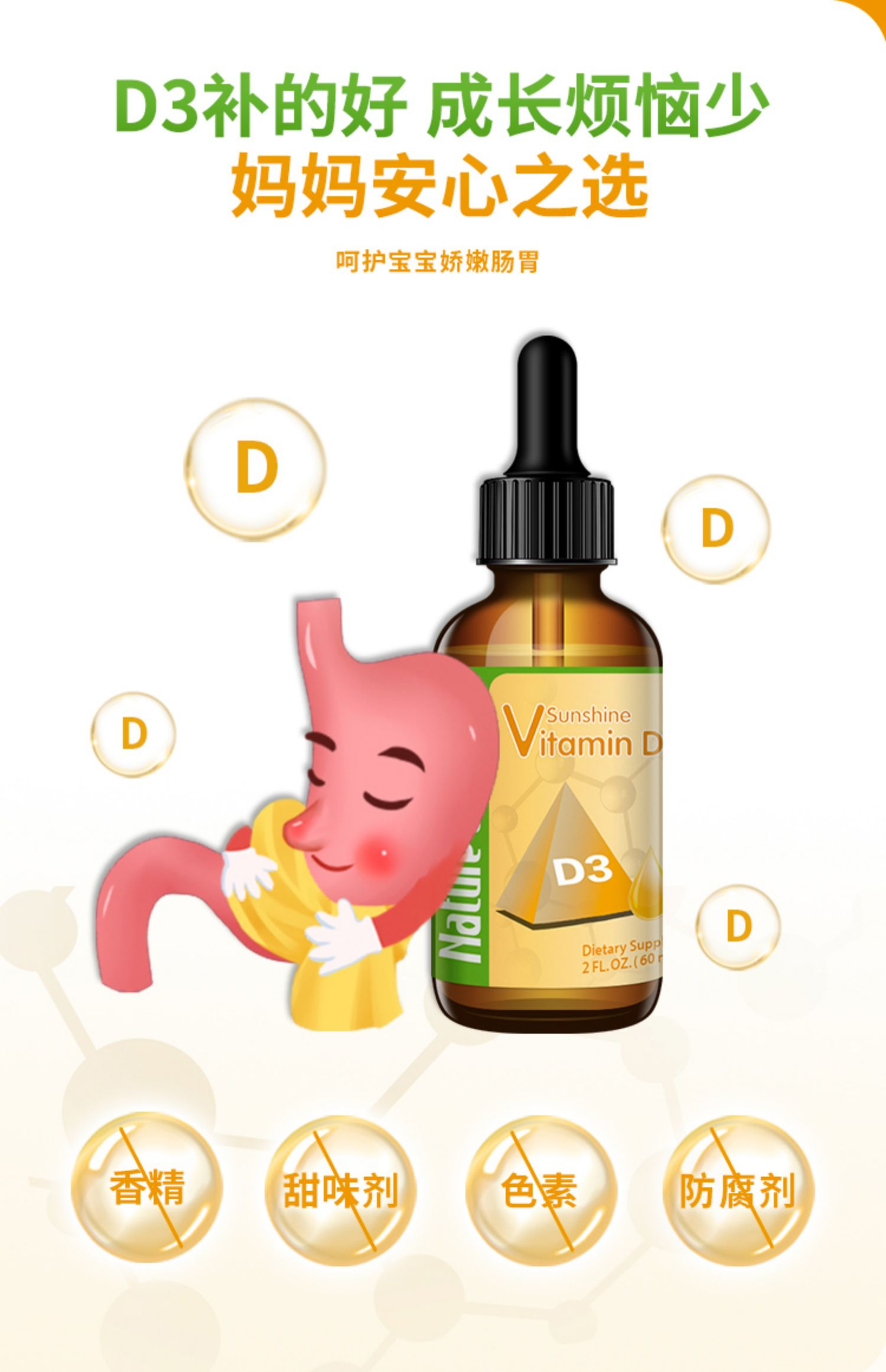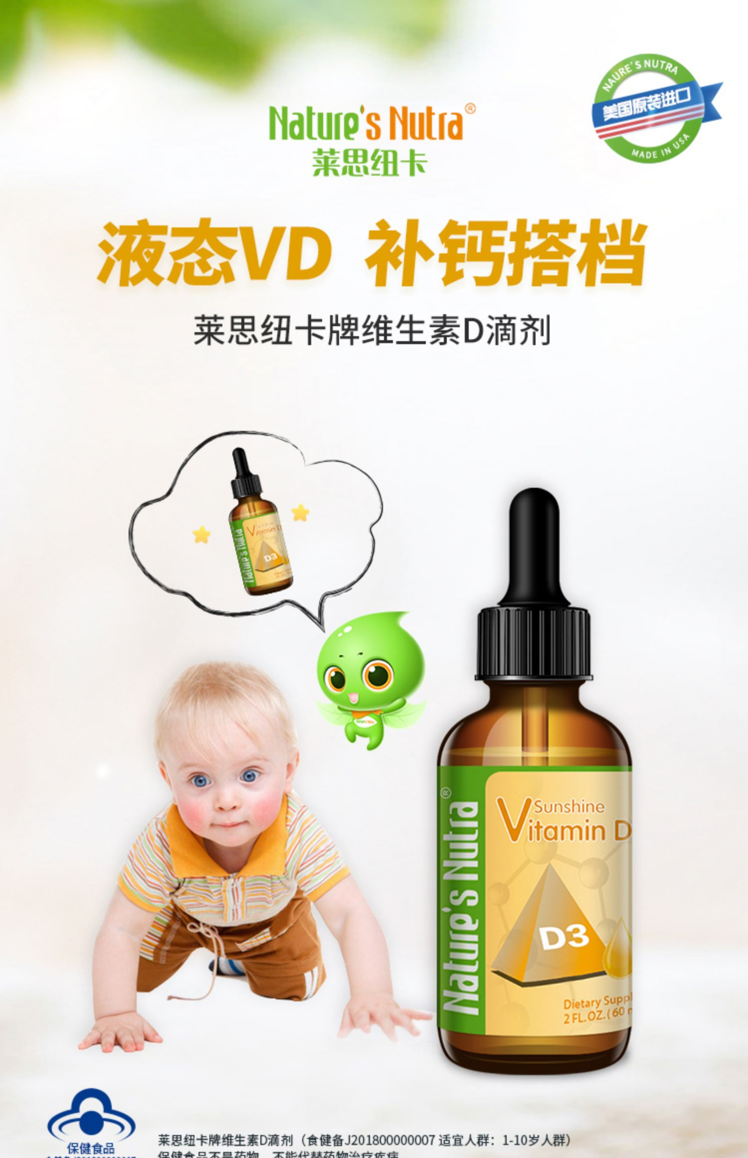 【金字塔版】莱思纽卡 Nature's Nutra 美国进口宝宝维生素D滴剂儿童维生素d3液态vd 60ml