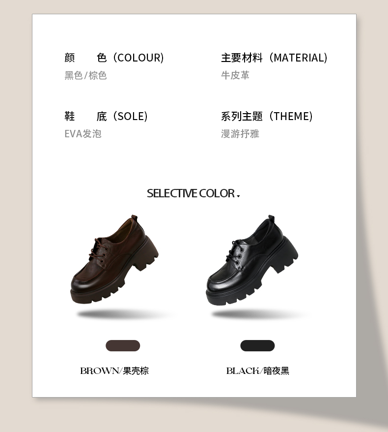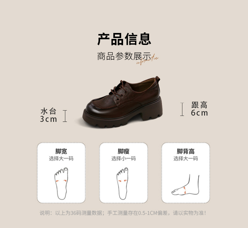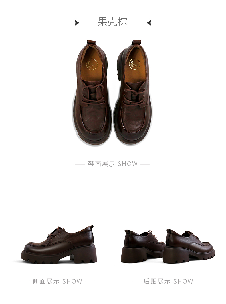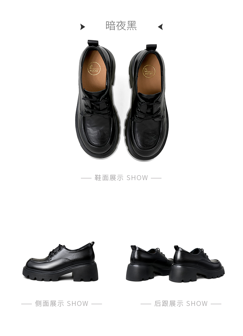 Safiya/索菲娅2025复古英伦风系带牛皮革真皮厚底百搭粗跟圆头深口小皮鞋SFD3112144