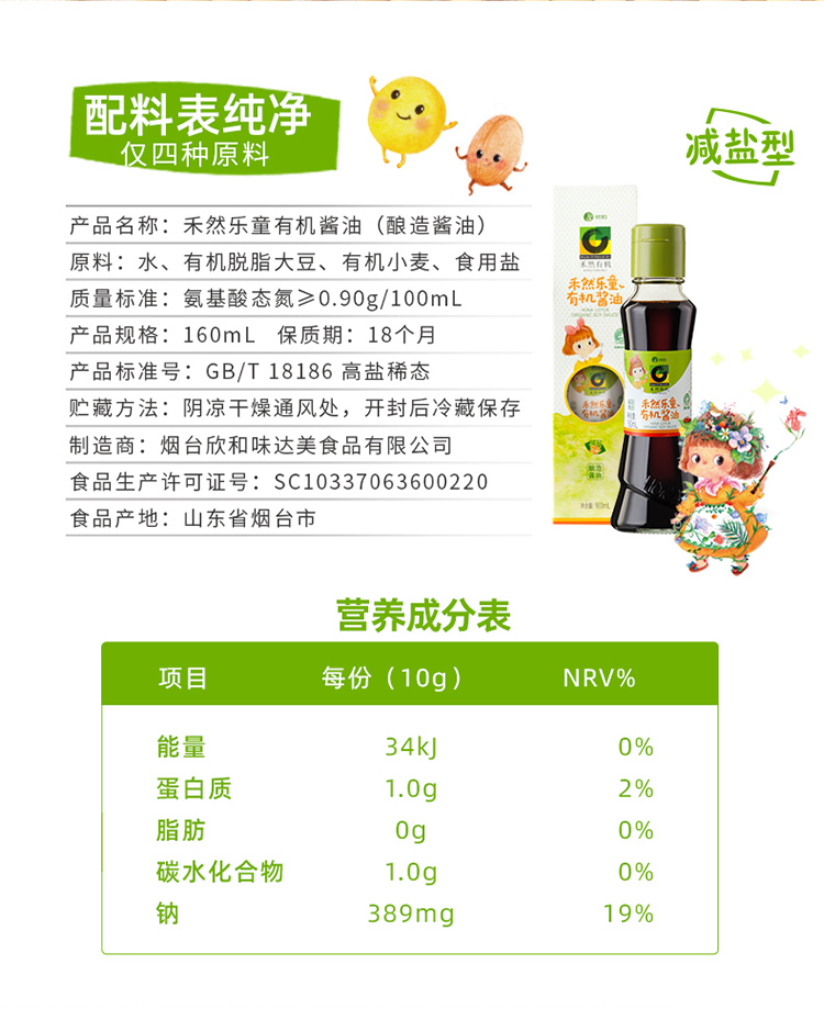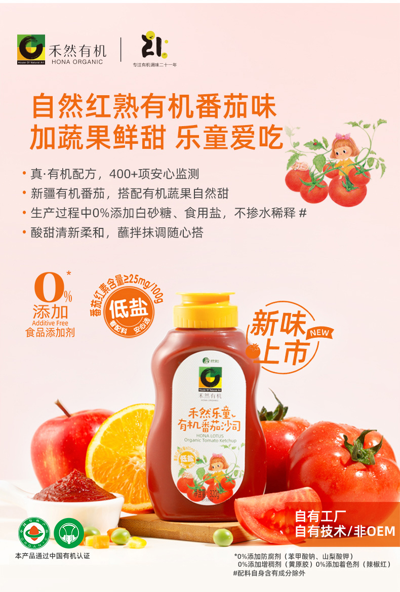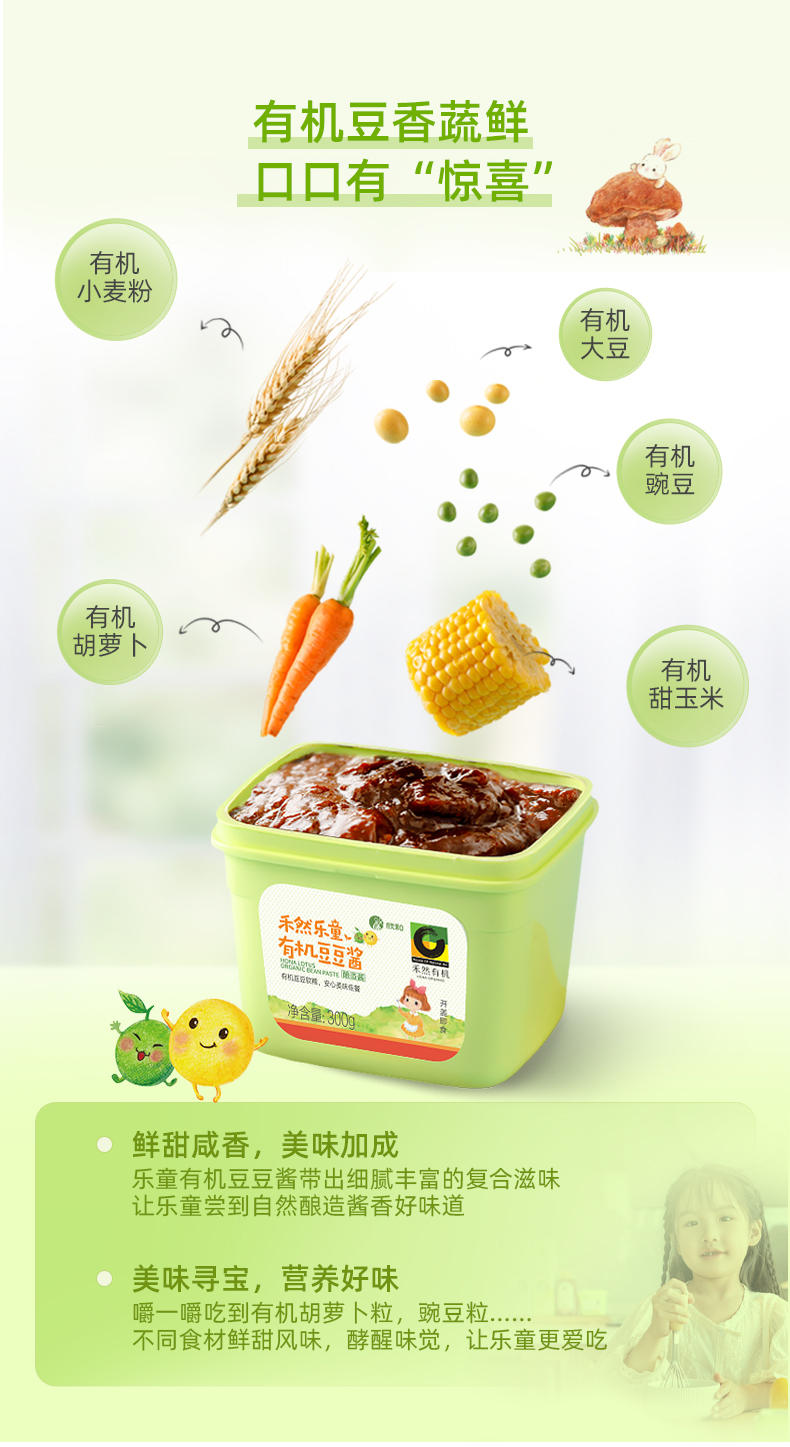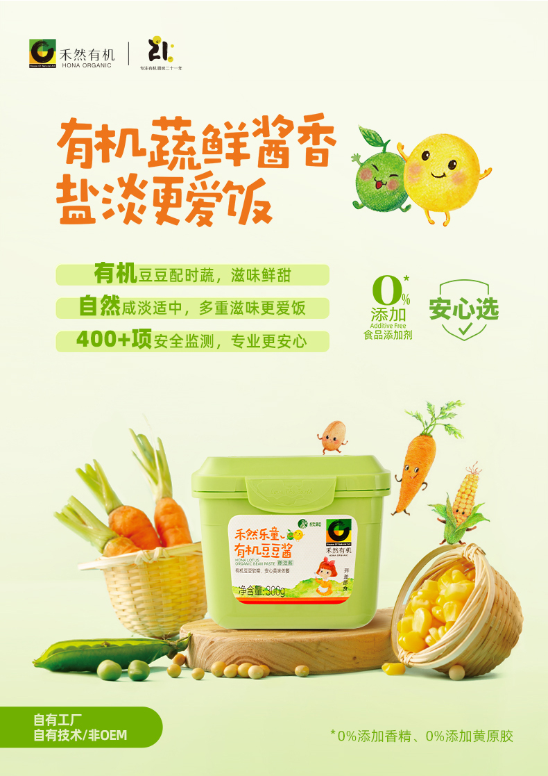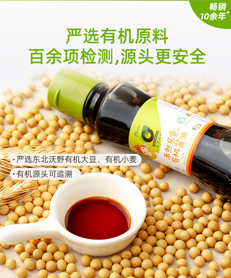 禾然乐童有机系列 有机酱油/豆豆酱/番茄沙司 让娃爱吃饭 纯酿造调味酱 纯素食品 家庭厨房健康料理常备 有机认证20+年