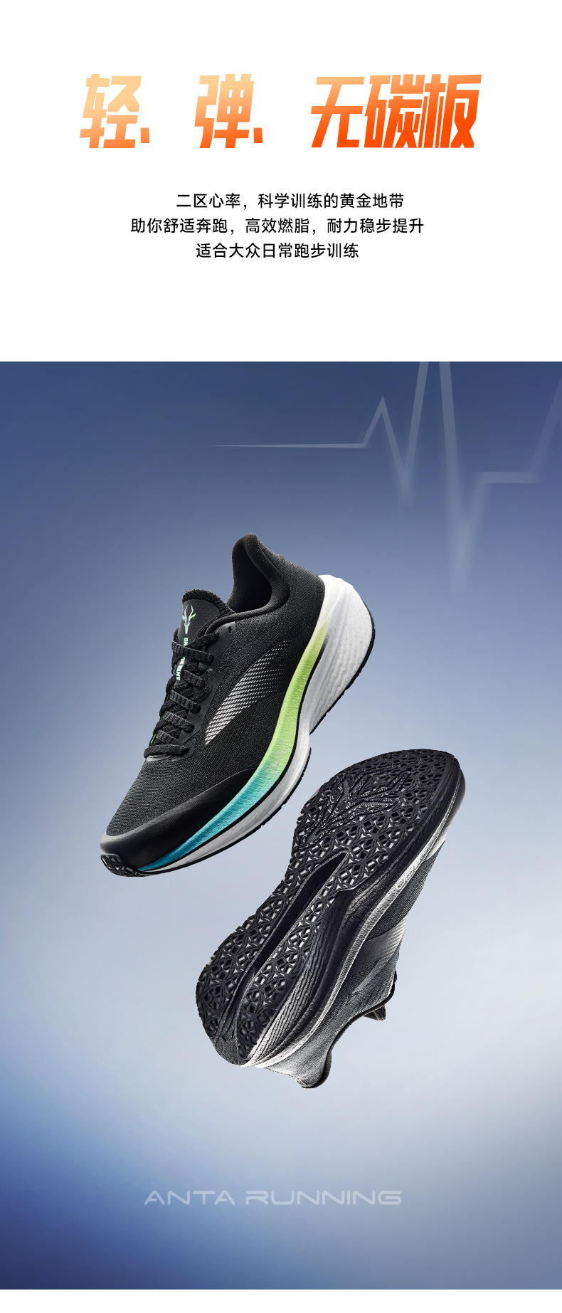 安踏二区心率80舒适缓震男子长距离轻量化训练跑鞋112615555-1