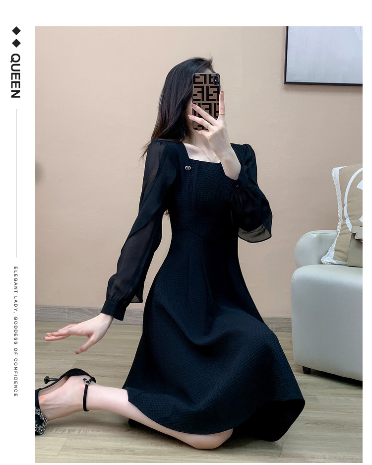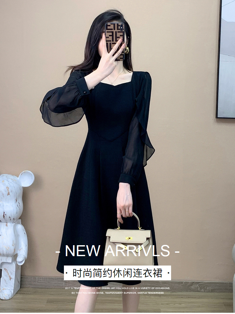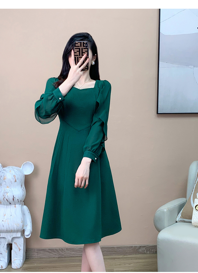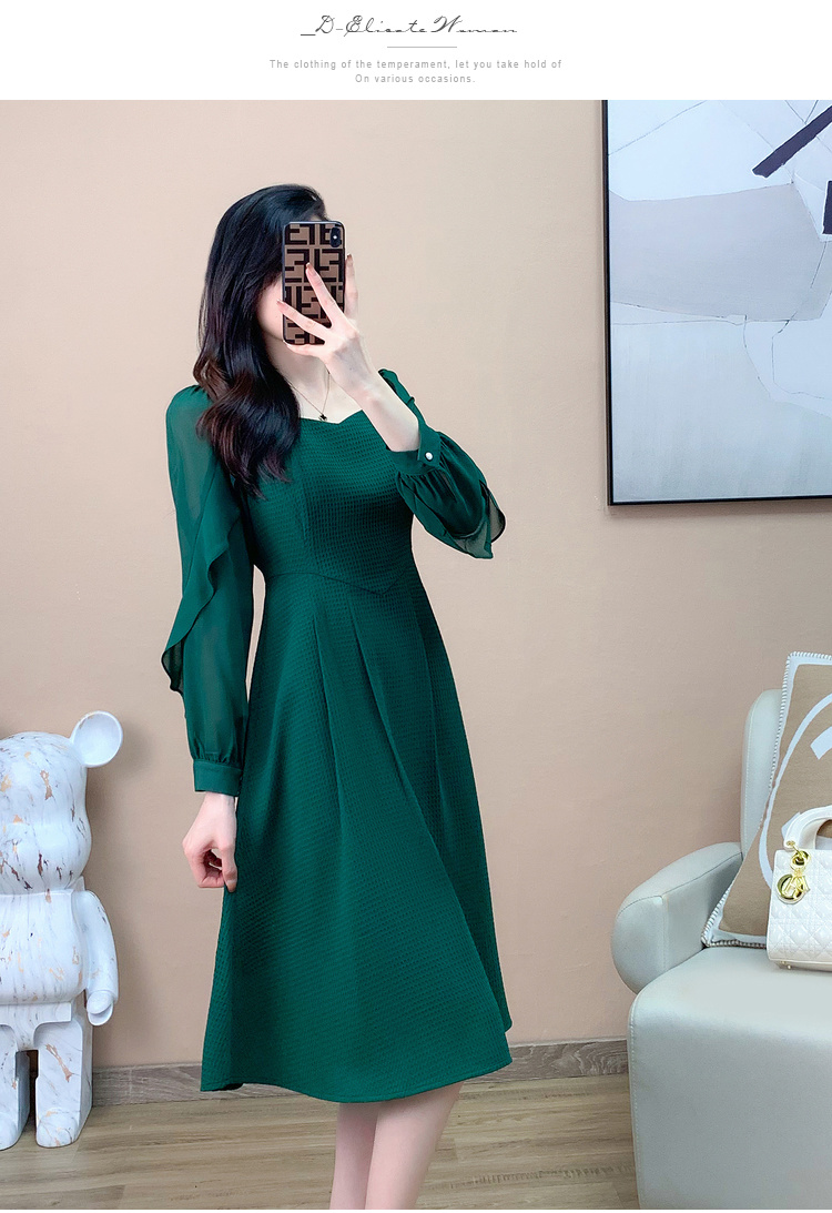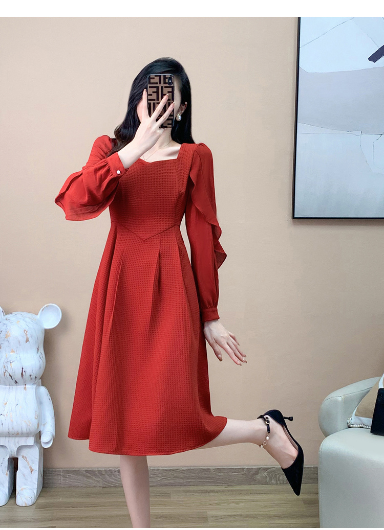 奢姿2024春季装新款大码女装胖妹妹气质方领荷叶花边连衣裙9923852134