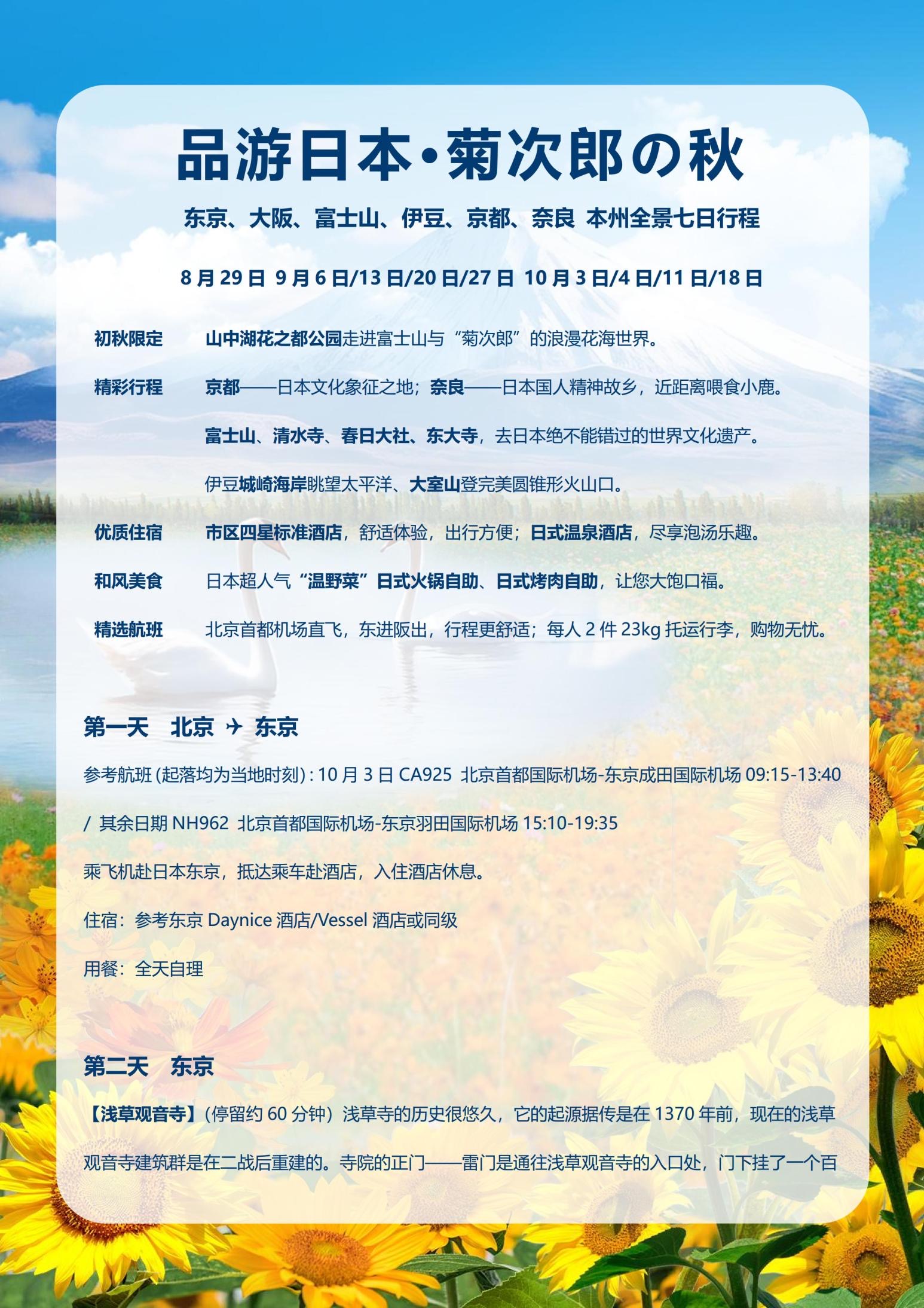 产品行程示例(9/20,9/27,10/3,10/4,10/11,10/18出发行程,实际行程恕另行通知)