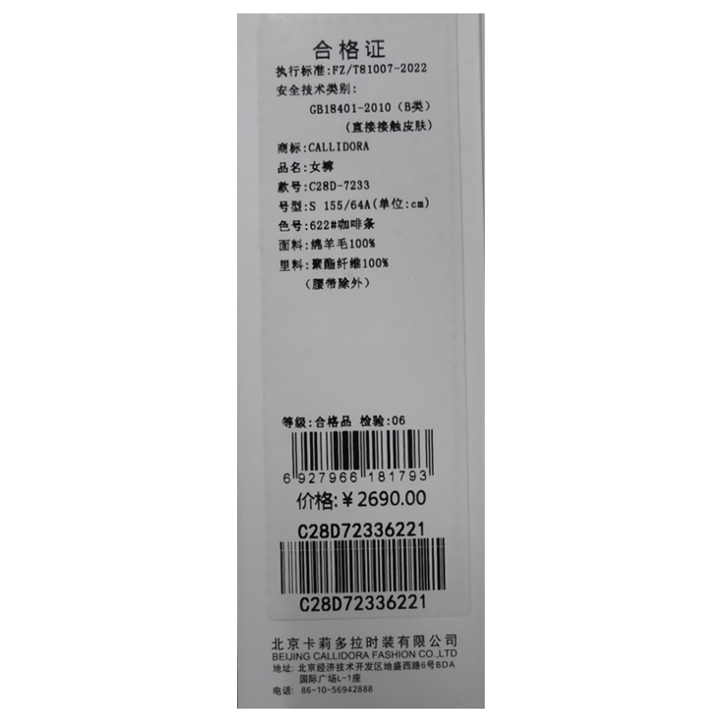 卡莉朵拉女裤C28D7233