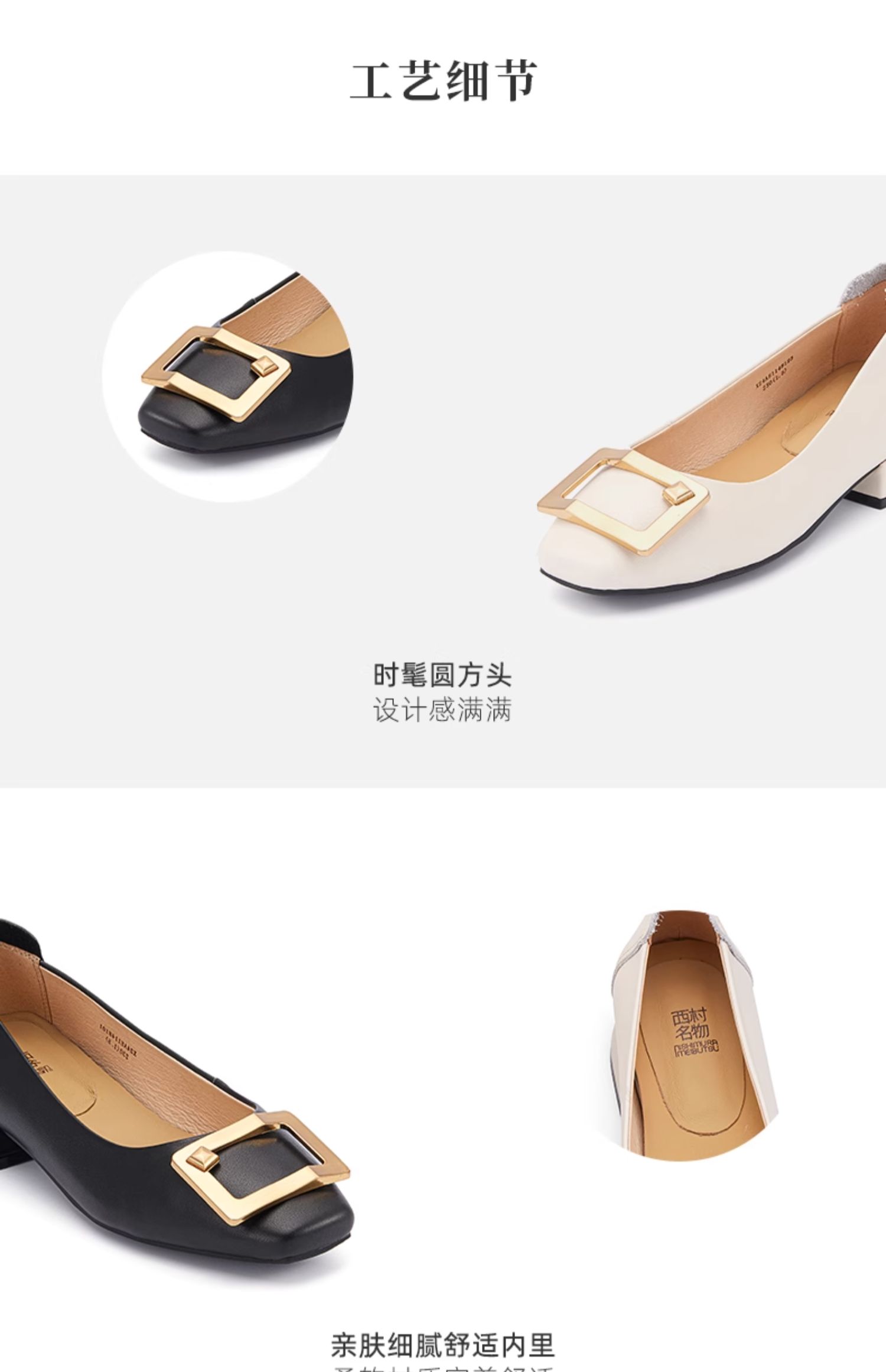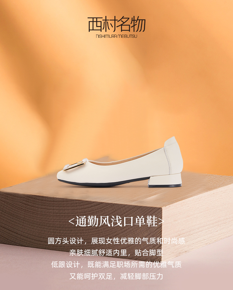 西村名物2024春季新品真皮时髦休闲方根通勤风浅口单鞋女X24AE11481