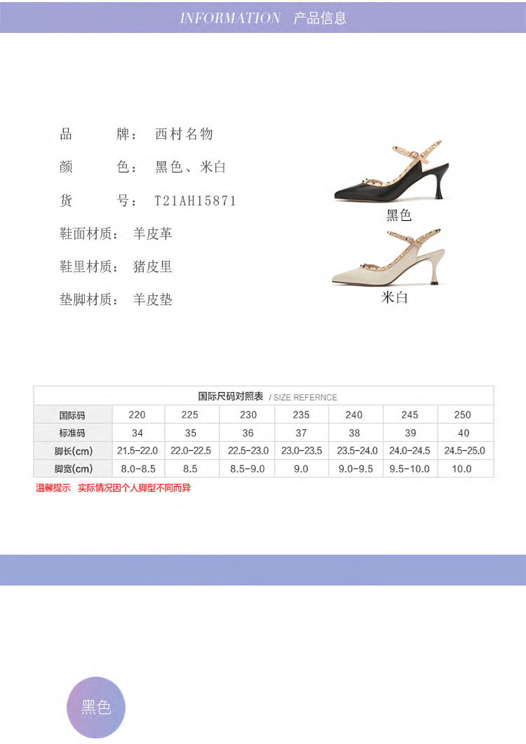 21年夏季新款包头凉鞋尖头铆钉凉鞋后空女凉鞋T21AH15871