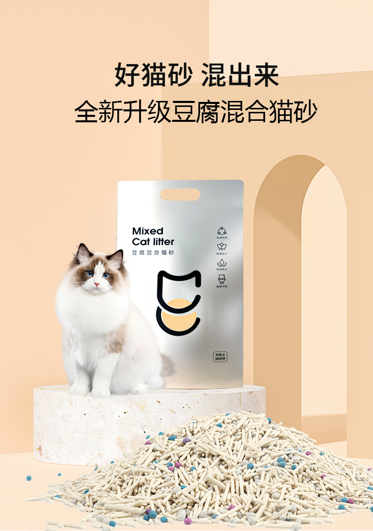 玲宠宠物猫砂膨润土豆腐混合猫砂活性炭除臭易结团可冲厕奶香绿茶2.5kg