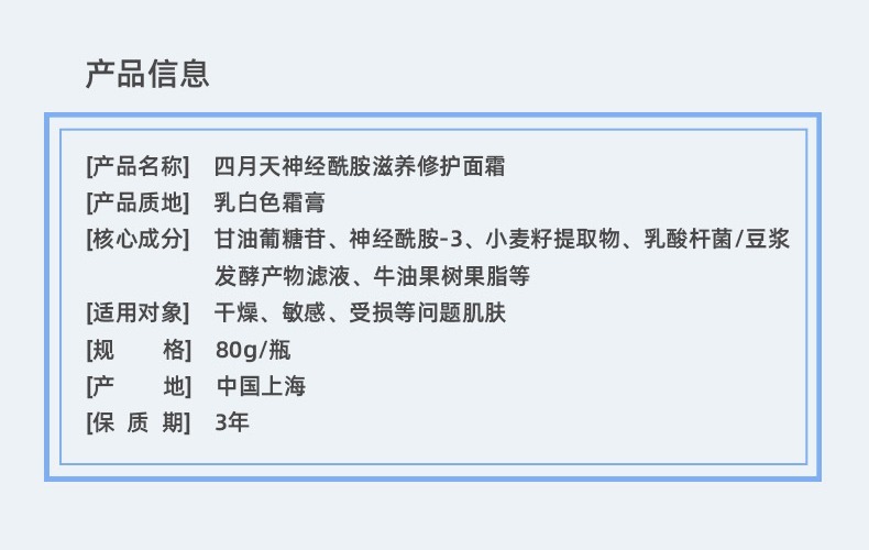 工作日48小时发货周末订单周一发货 四月天神经酰胺舒润保湿霜50g(新生儿可用) / 滋养修护面霜80g(12岁以上可用)
