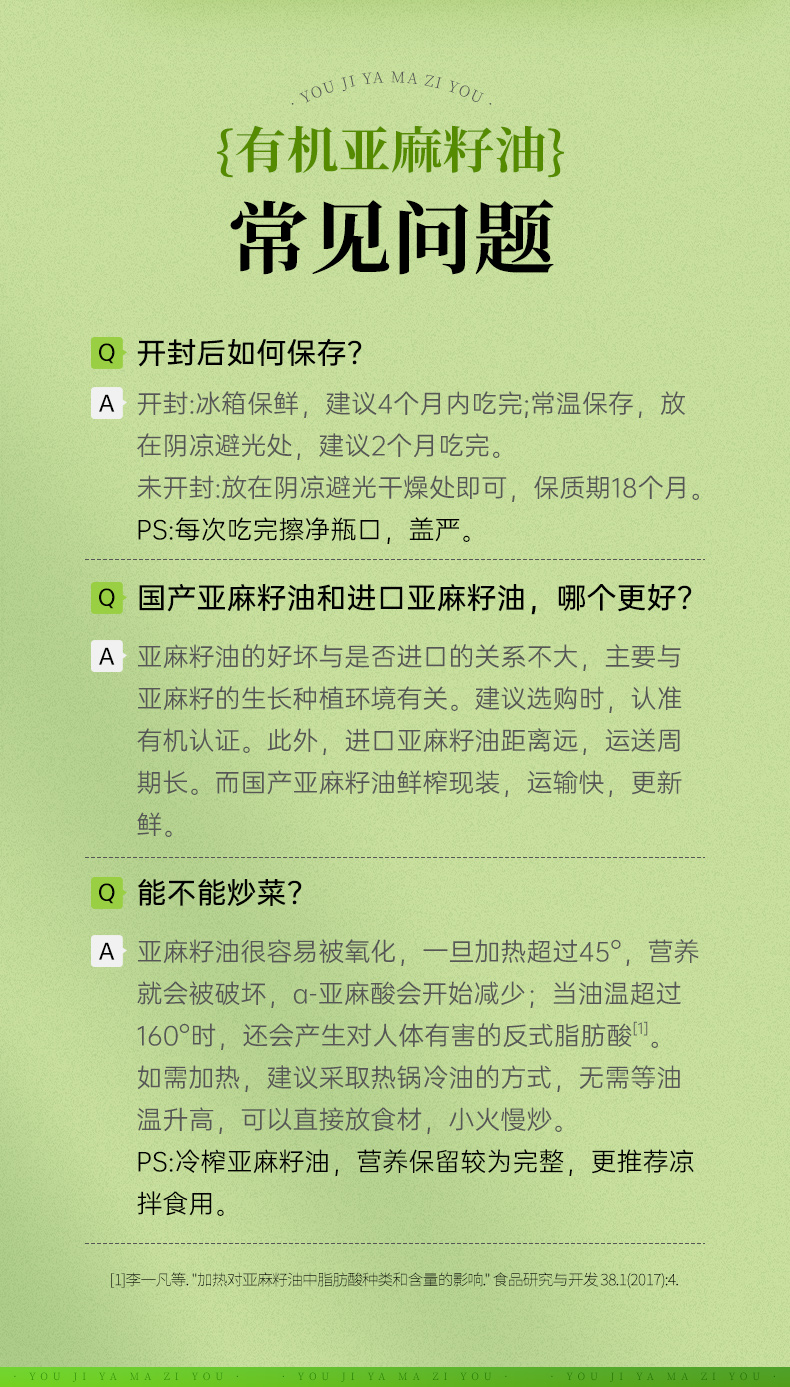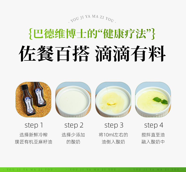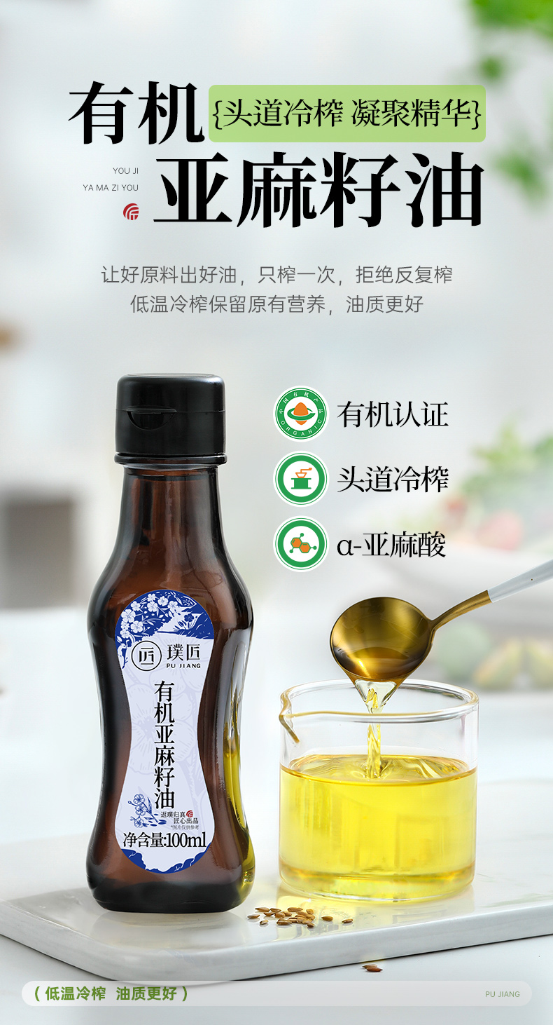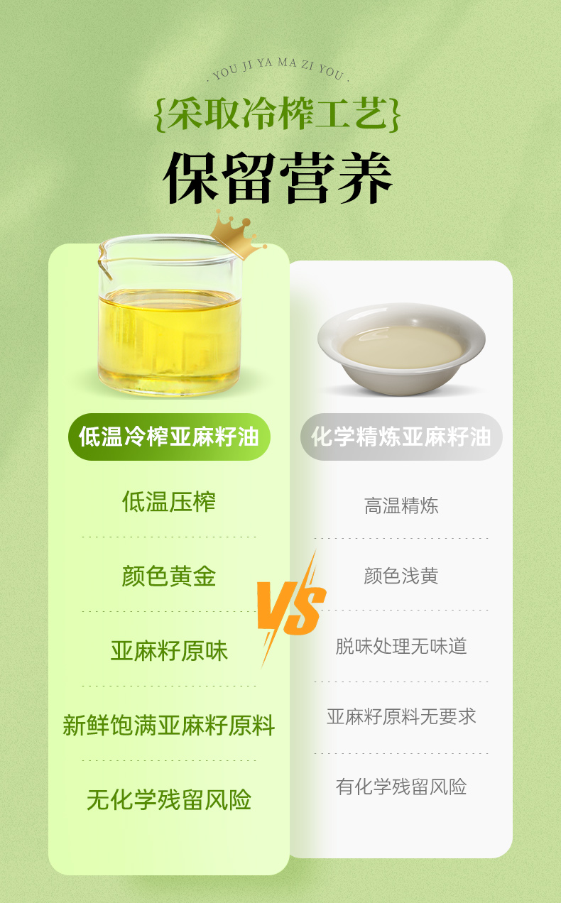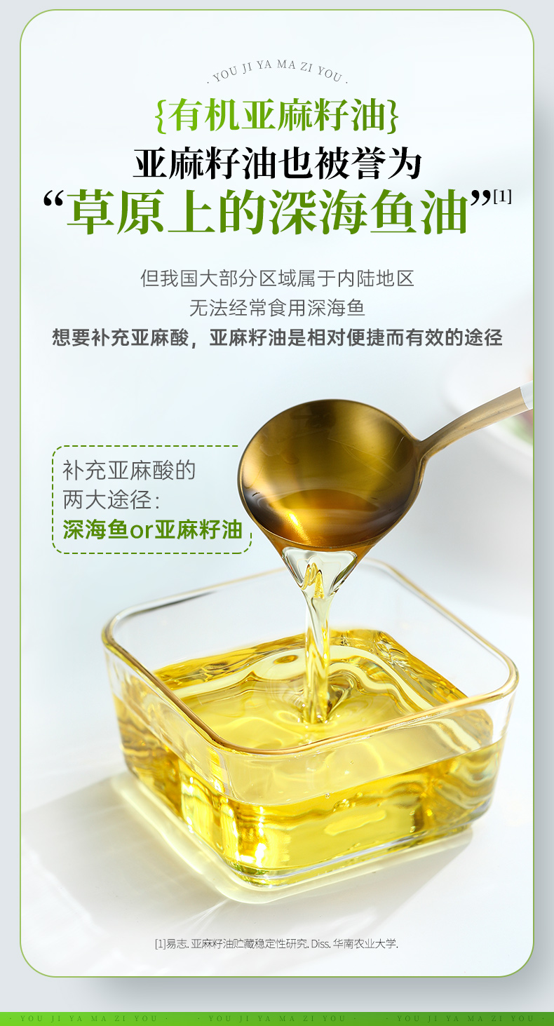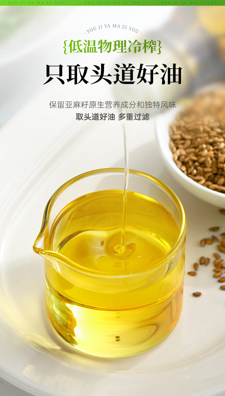 有机亚麻籽油冷榨压榨炒菜辅食拌酸奶食用油亚麻籽油官方旗舰店