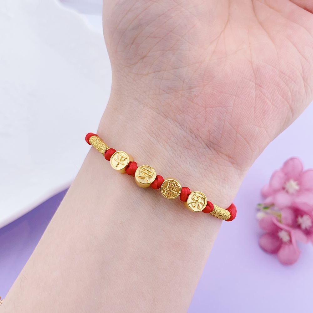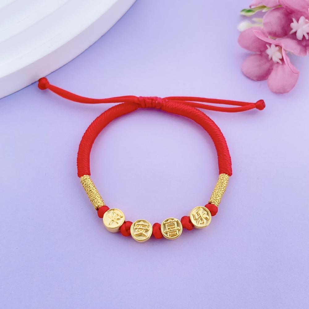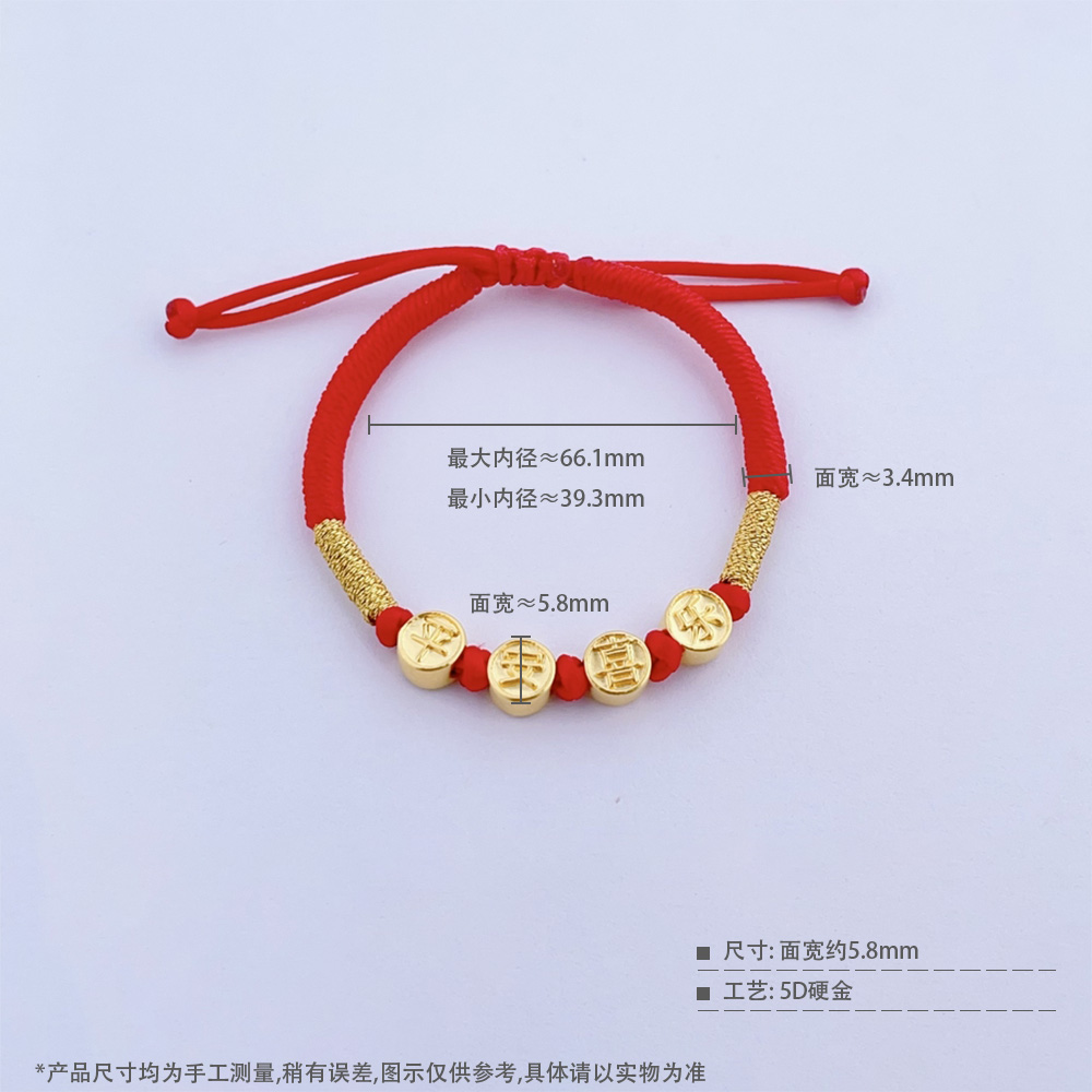 【限时7.5折】【定价黄金】足金 #儿童/宝宝 #平安 无氰5D硬金空心平安喜乐编织红绳调节手串成品手串(宝宝款,适合0-5岁宝宝)(AJ5DSC00027)预售产品下单后不退款不退货不换货不补差价