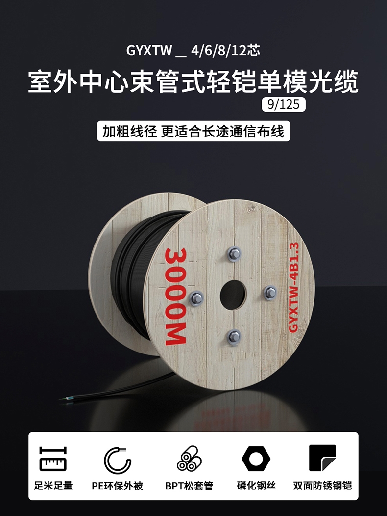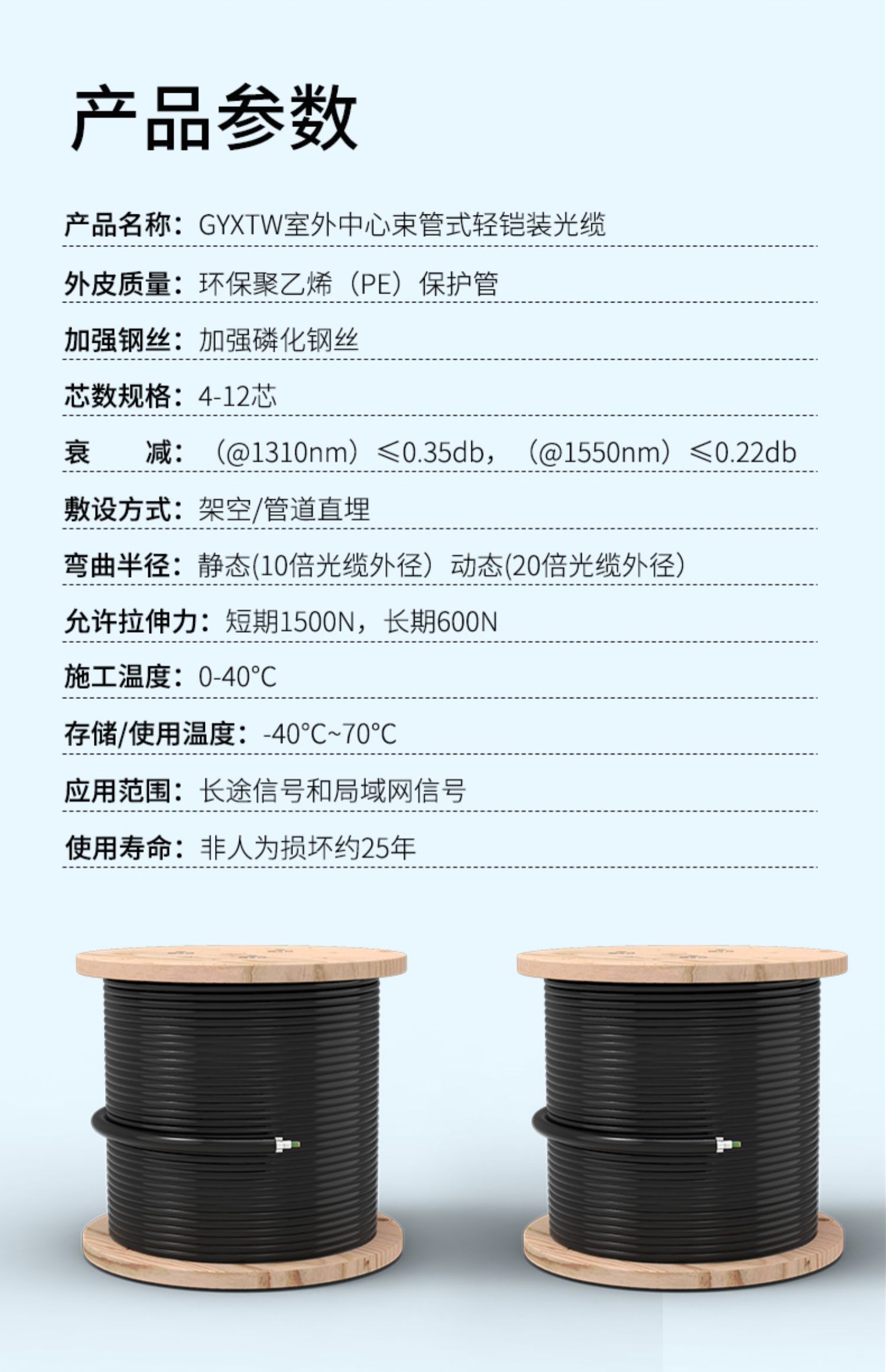 商品名称:GYXTW单模室外光缆中心管式轻铠光缆4芯6芯8芯12芯光钎线缆光缆光纤