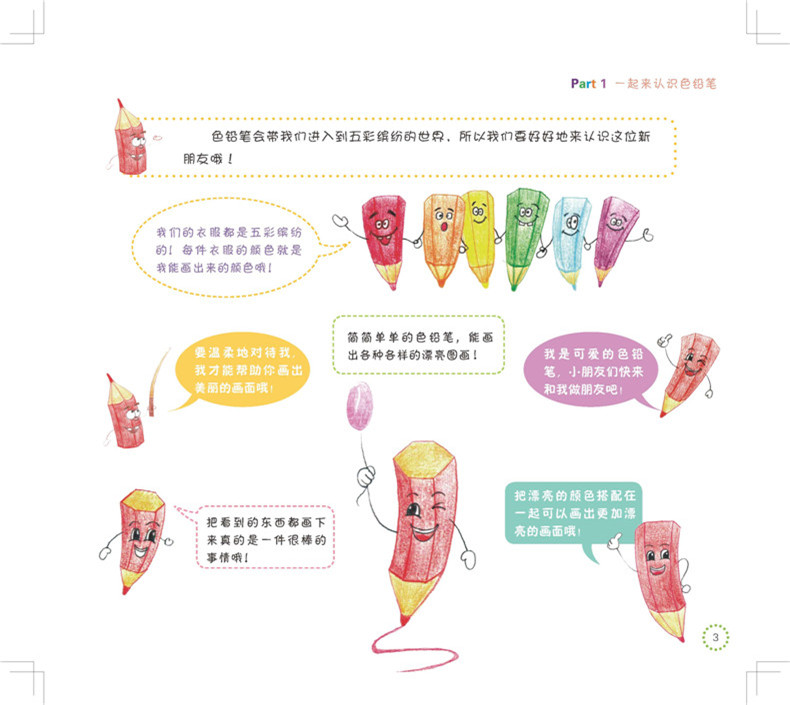 PART1一起来认识色铅笔1.1我们的朋友——色铅笔1.2色铅笔有几“色”1.3色铅笔舒适的小家1.4你会用“我”吗?