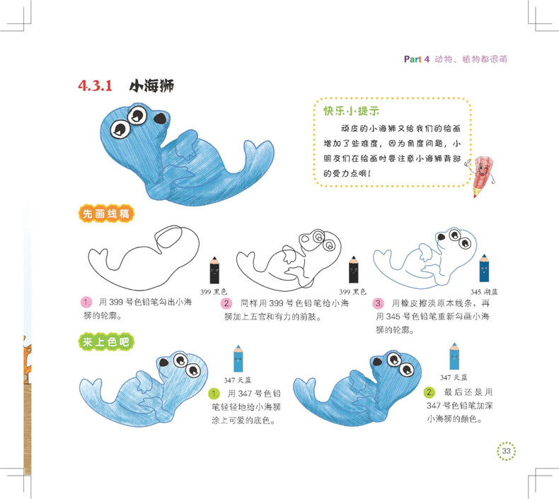 ——————————————PART2为漂亮的图画做准备2.1简单线条不简单2.2常见的图形,不常见的图案2.3线条与图形的可爱组合2.4漂亮的颜色搭配PART3学点技巧很关键3.P彩色铅笔的色彩搭配3.2彩色铅笔的叠色效果3.3角度的变化3.4线条影响质感