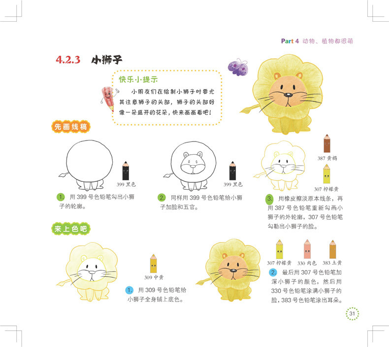 3.5不同材质的画法PART4动物、植物都很萌4.1我最爱的那些宠物4.2凶猛的动物也可爱4.3我和海洋有个约会4.4小昆虫的大世界4.5满满植物,满满爱小朋友们一起来涂色PART5自己的玩具自己收拾5.1孩子们的可爱小玩具5.2我是男孩,我喜欢它们5.3我是女孩,我喜欢它们小朋友们一起来涂色PART6我是一枚小吃货6.1最爱的零食,我来了6.2妈妈做的美味饭菜小朋友们一起来涂色PART7天天都能见到的物品