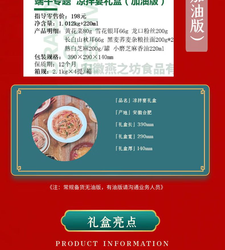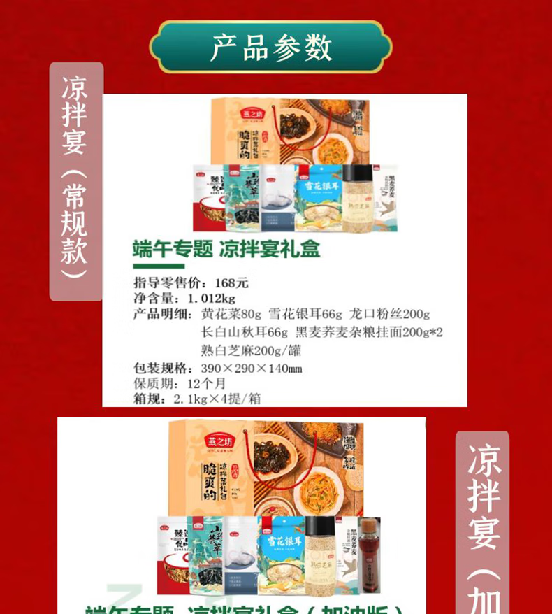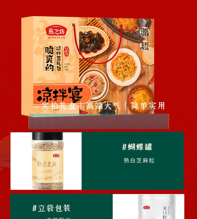 燕之坊燕之坊凉拌宴礼盒 1.012kg 南北干货 粉丝木耳银耳挂面芝麻 凉拌宴礼盒1012g(常规款)