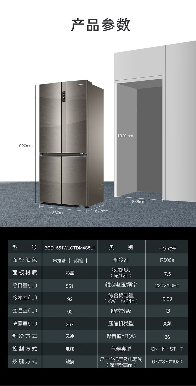 卡萨帝十字门冰箱BCD-551WLCTDM4S5U1