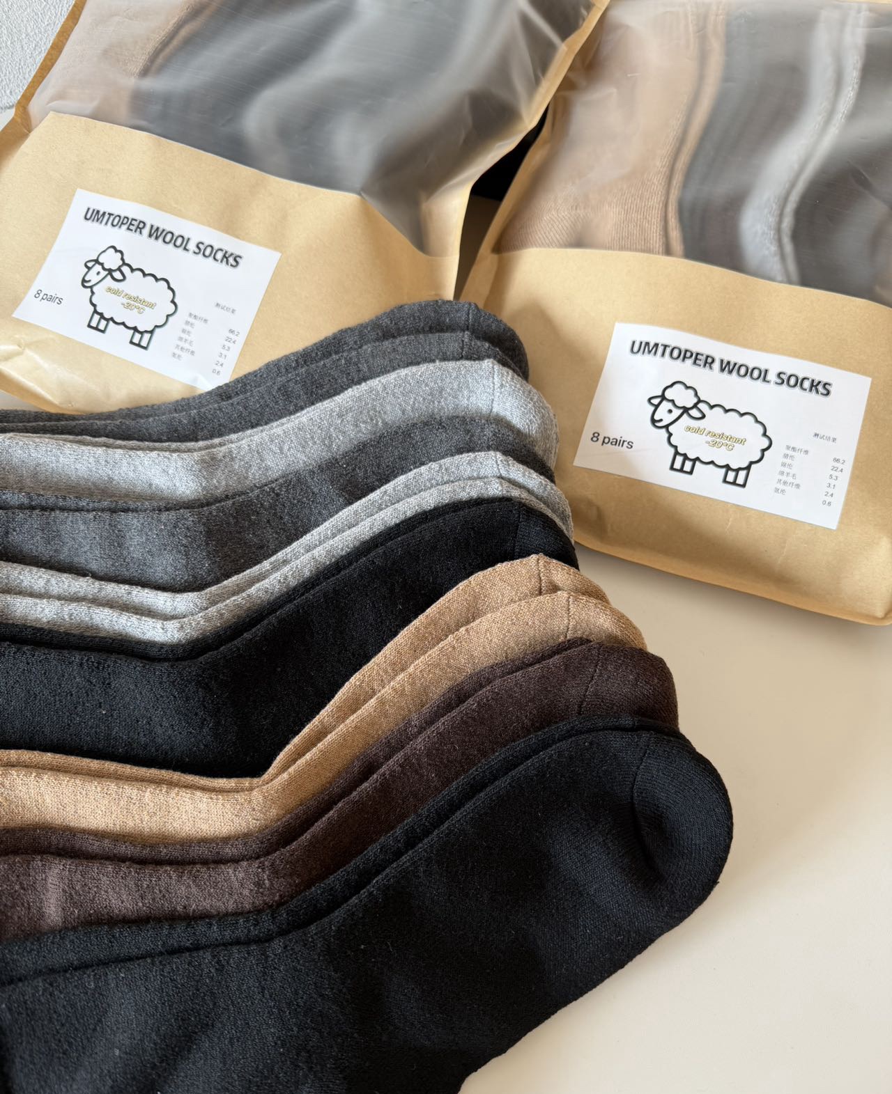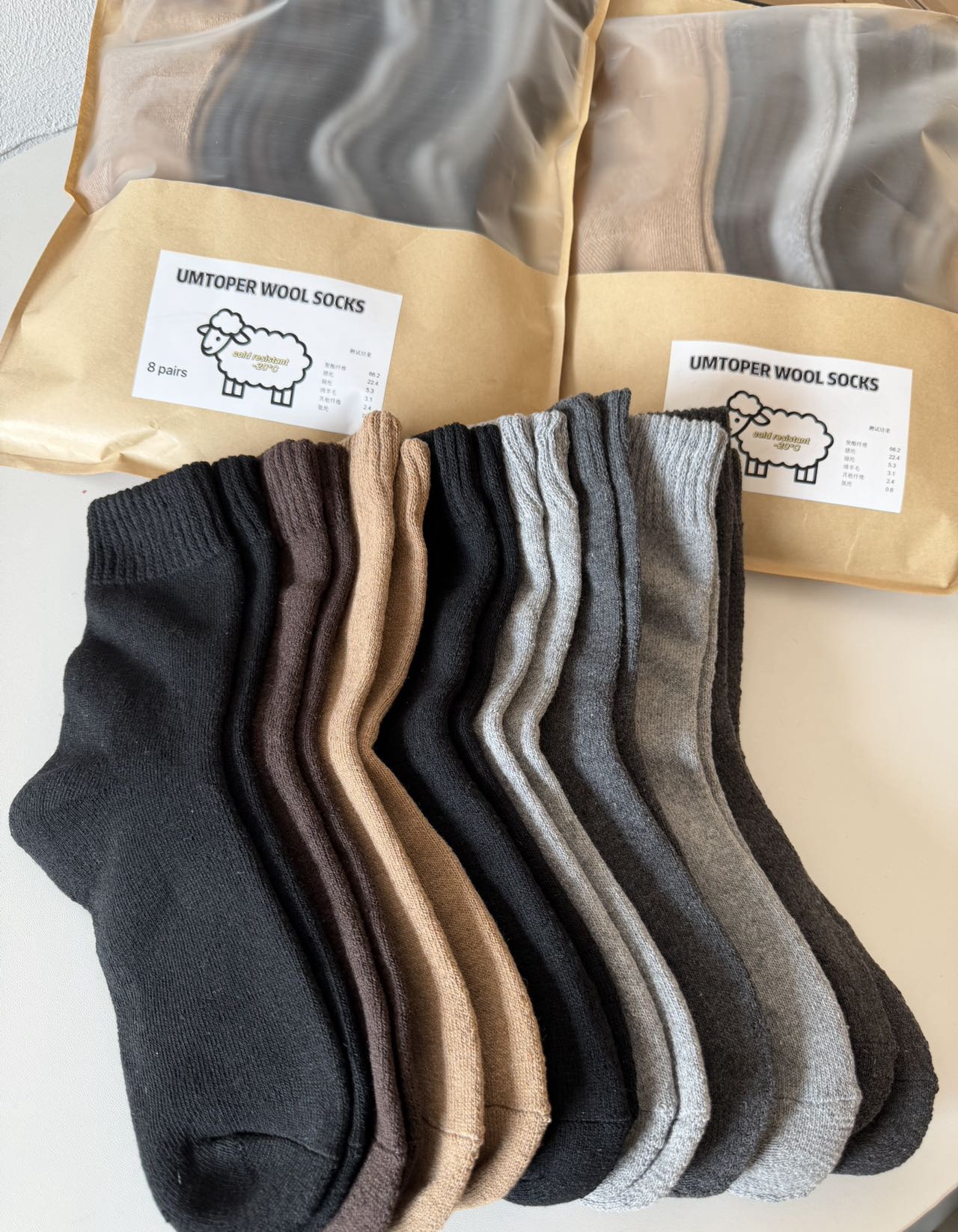 UMTOPER羊毛袜8双装男女士情侣袜!