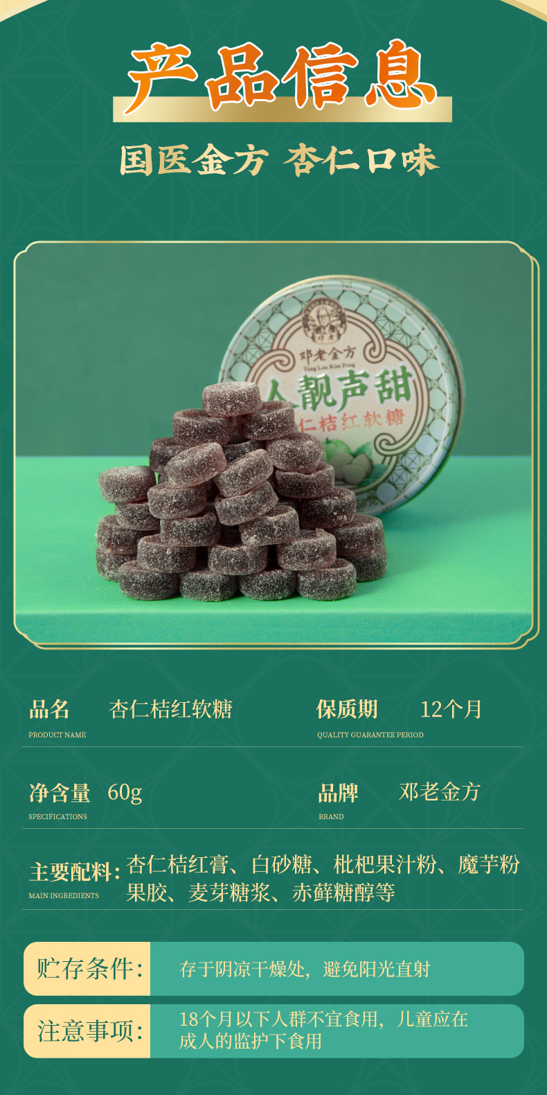 【买2送1,近效期到23年10月,介意慎拍】杏仁桔红软糖60g 邓老金方