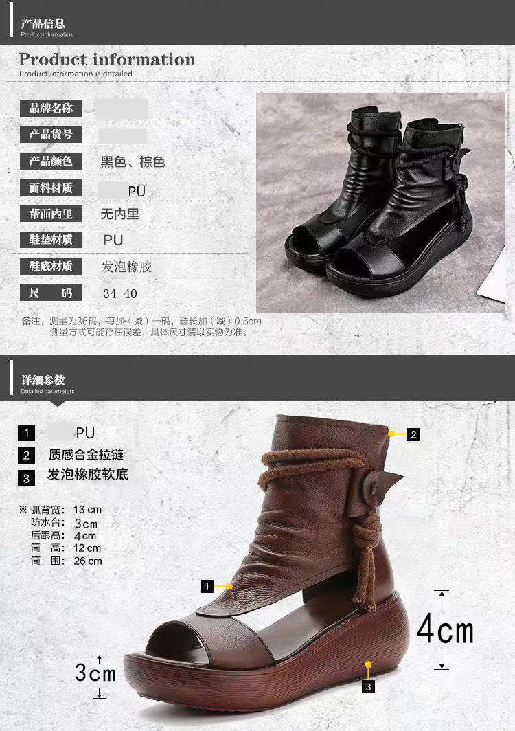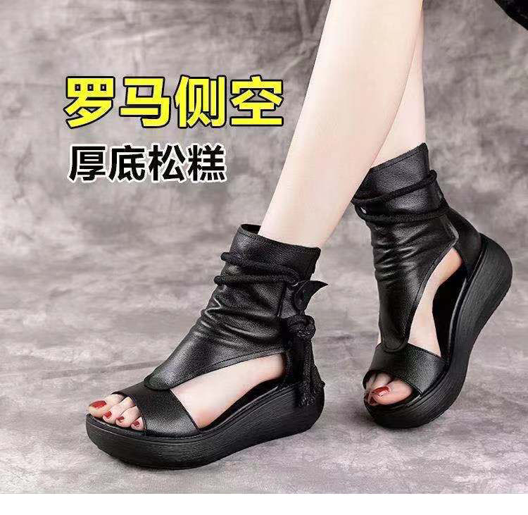 复古罗马凉鞋厚底高帮鱼嘴鞋后拉链松糕底凉靴