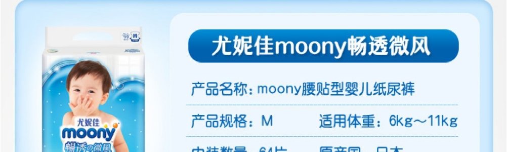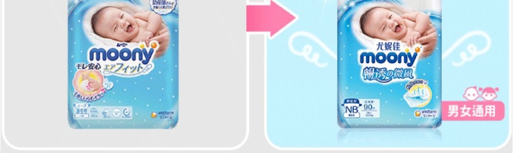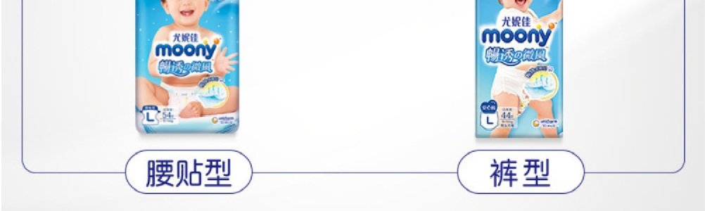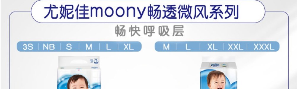 【一般贸易】日本 尤妮佳(moony)畅透纸尿裤 男女宝宝通用纸尿裤拉拉裤NB码/S码/M码/L码/XL码/XXL码(彩标)