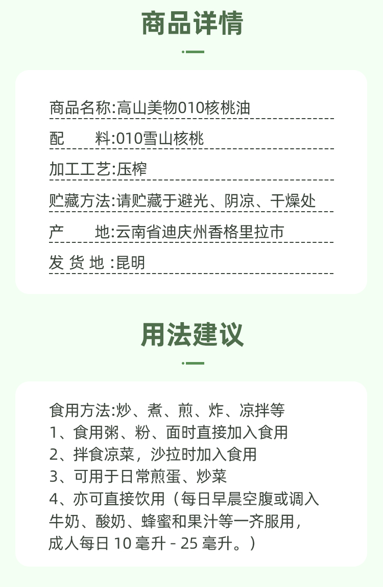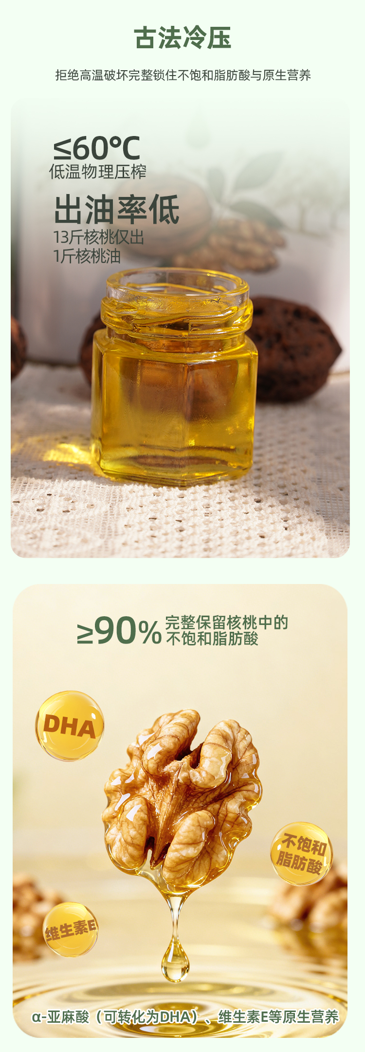 010核桃油 低温物理榨取 保留核桃原生营养 婴幼儿特别适合 原料有机加010营养补充