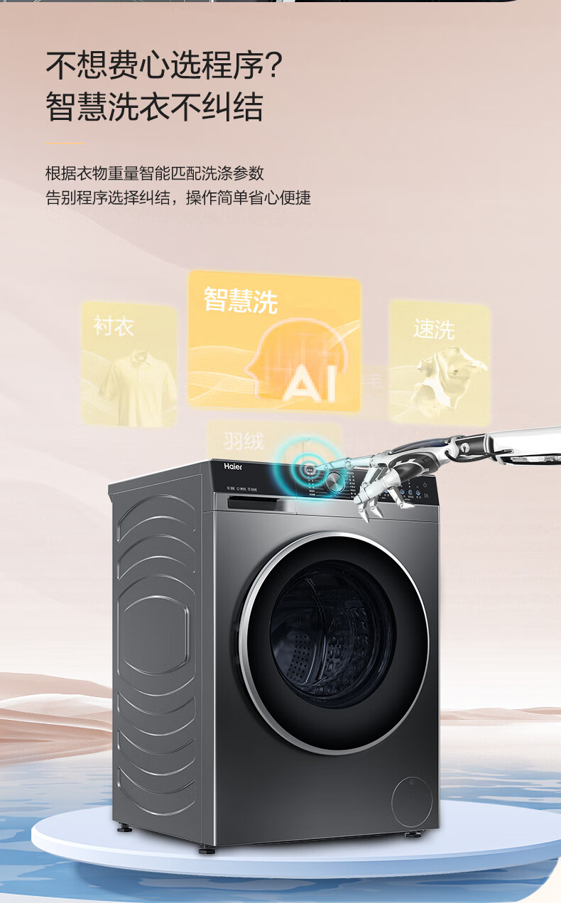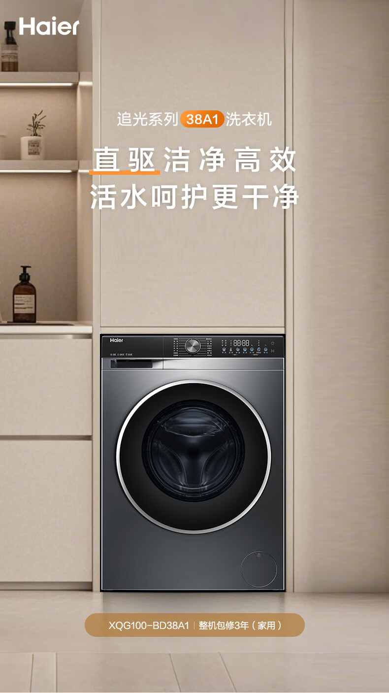 海尔(Haier)25年新品10KG全自动滚筒洗衣机一级能效直驱变频+超薄嵌入+精华洗+智投XQG100-BD38A1