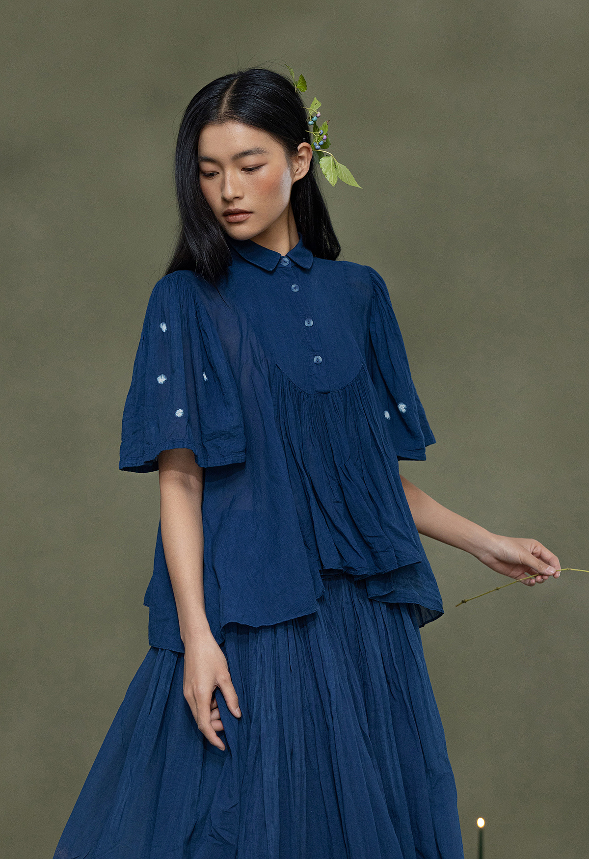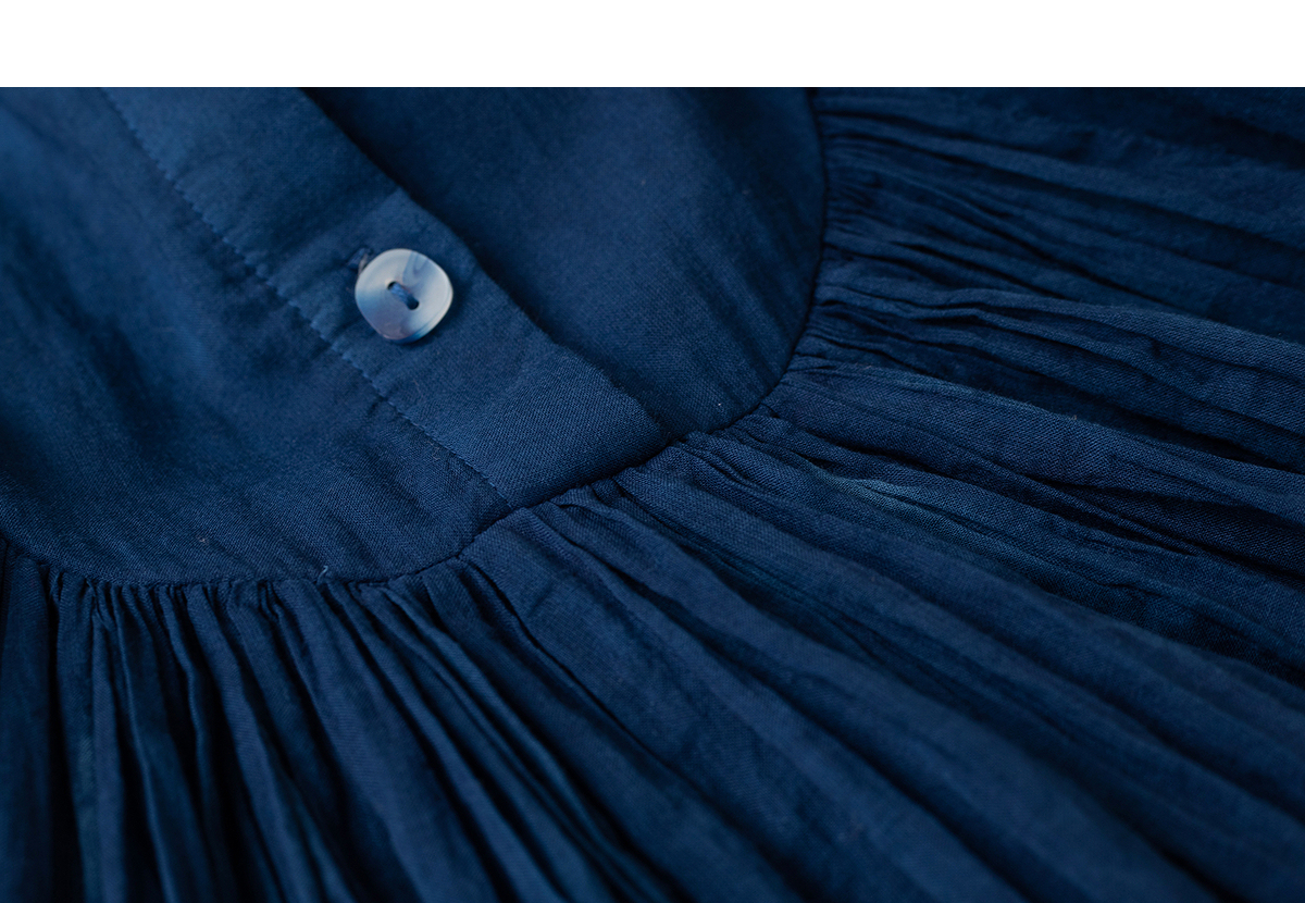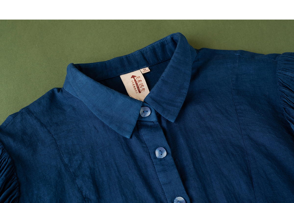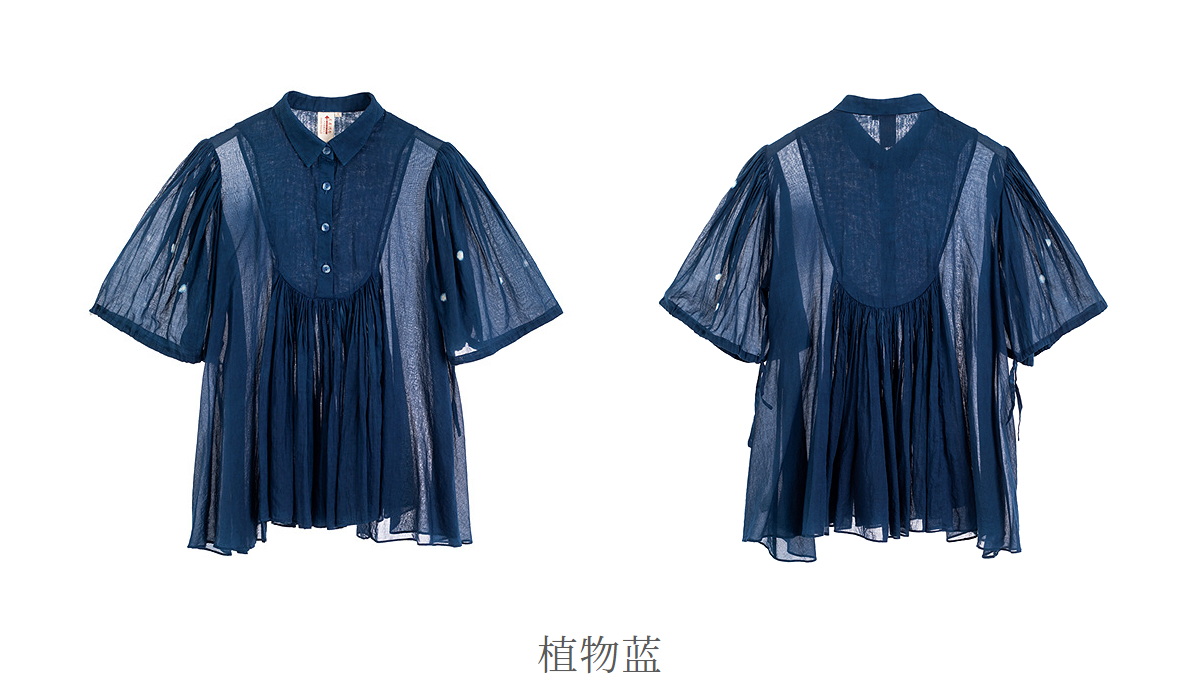 【林栖设计小店】植物染色|手工植物蓝婴儿棉密褶2026春新款宽松翻领衬衣1961015