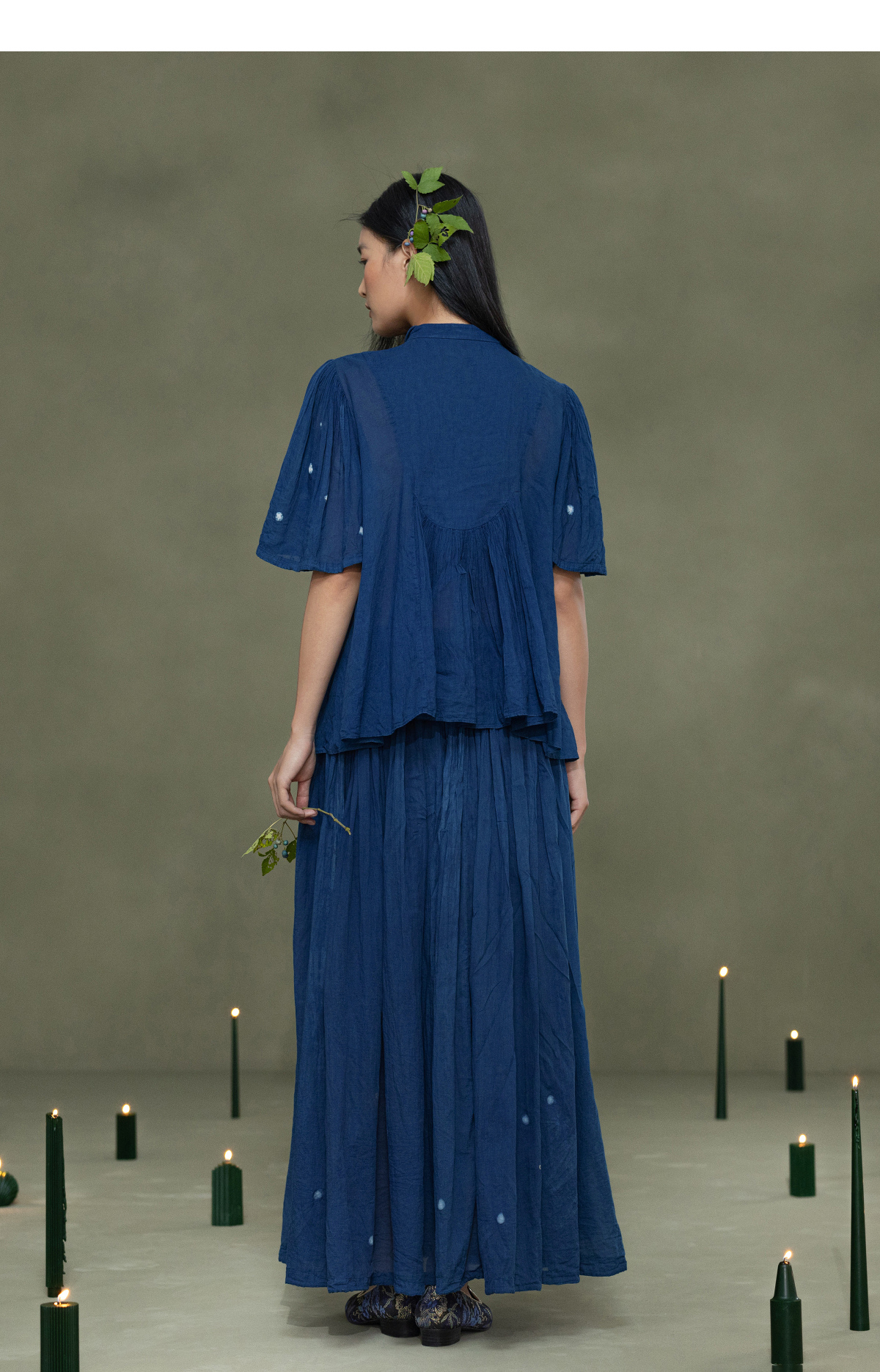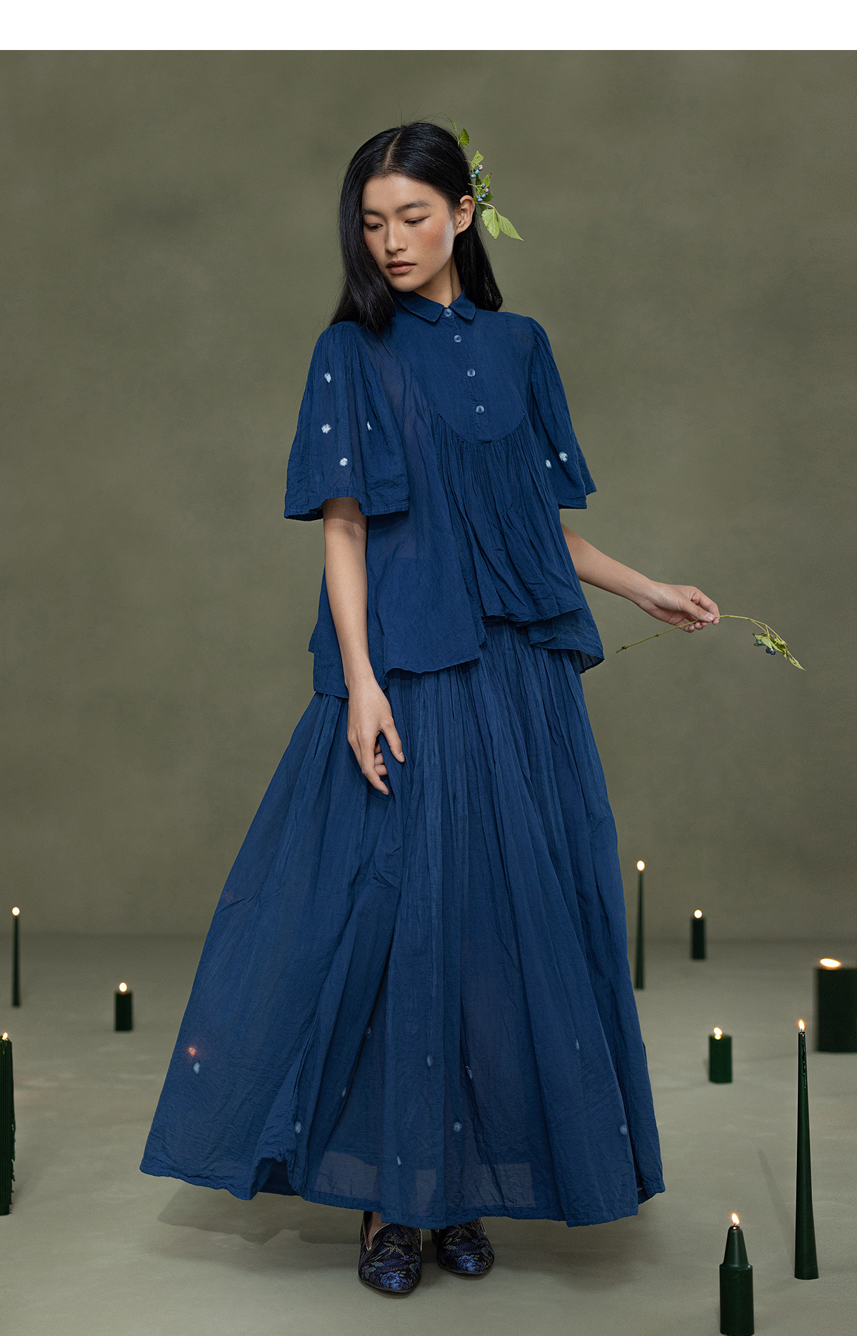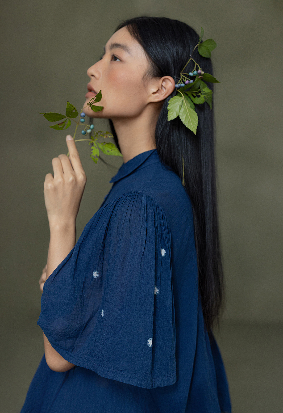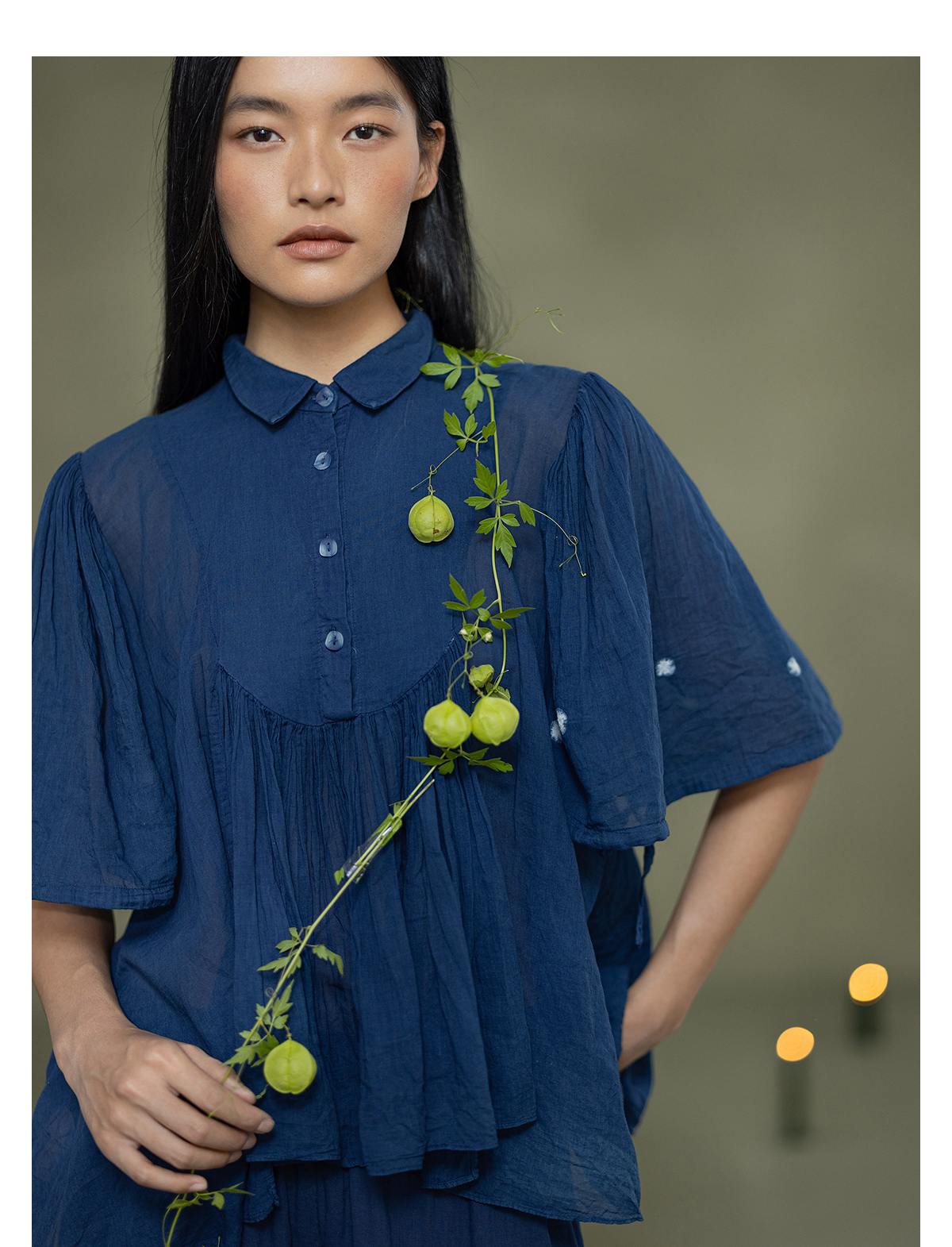 【林栖设计小店】植物染色|手工植物蓝婴儿棉密褶2026春新款宽松翻领衬衣1961015