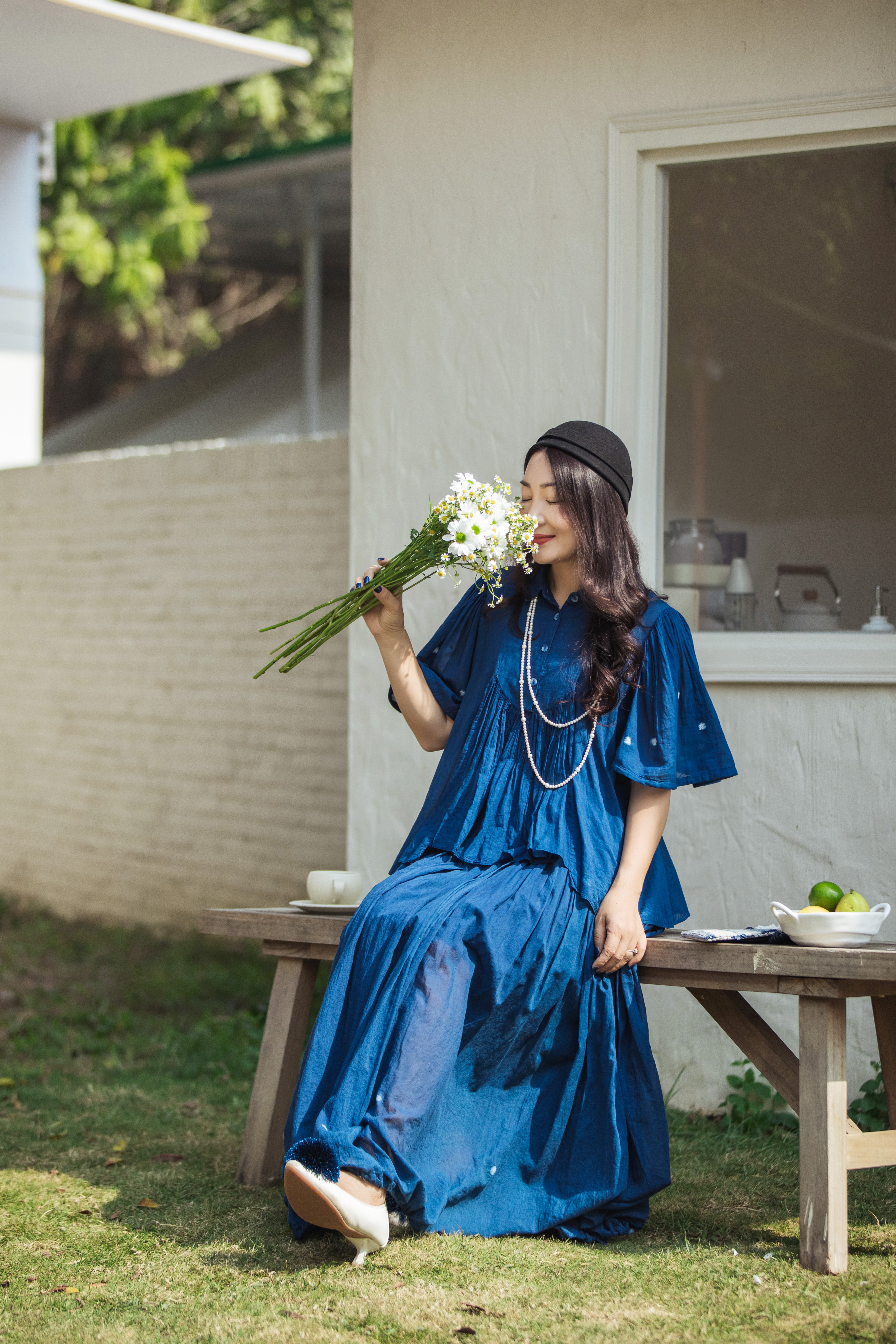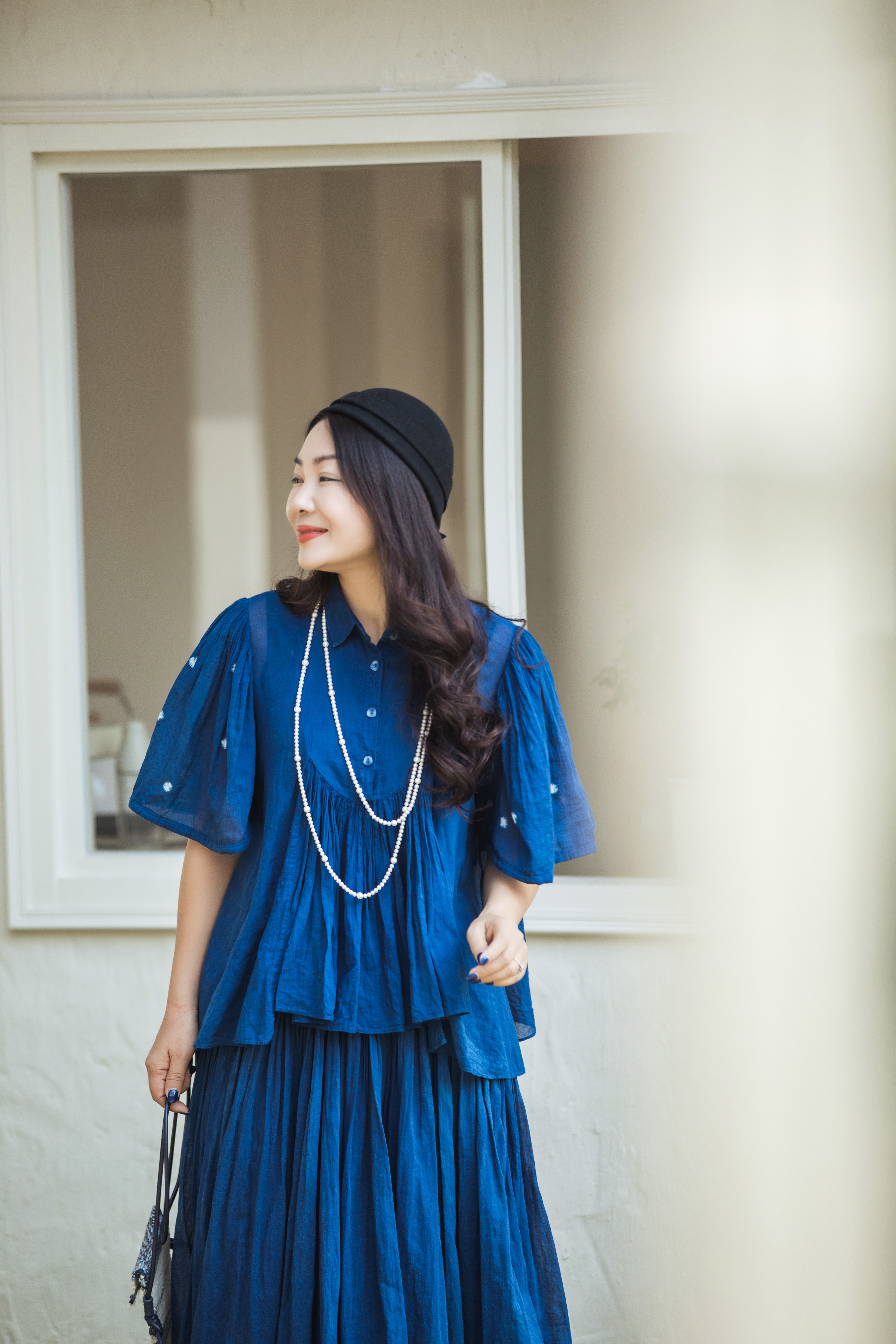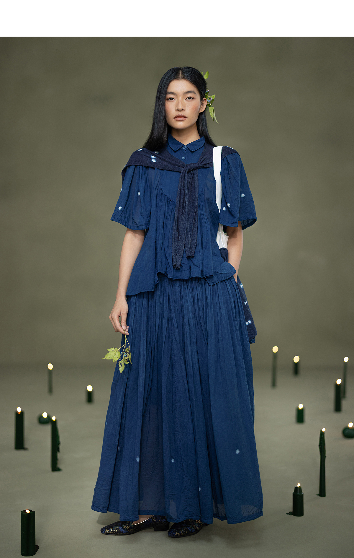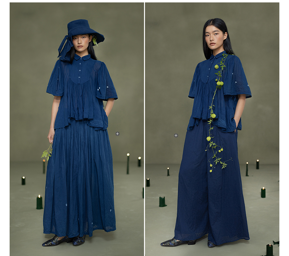 【林栖设计小店】植物染色|手工植物蓝婴儿棉密褶2026春新款宽松翻领衬衣1961015