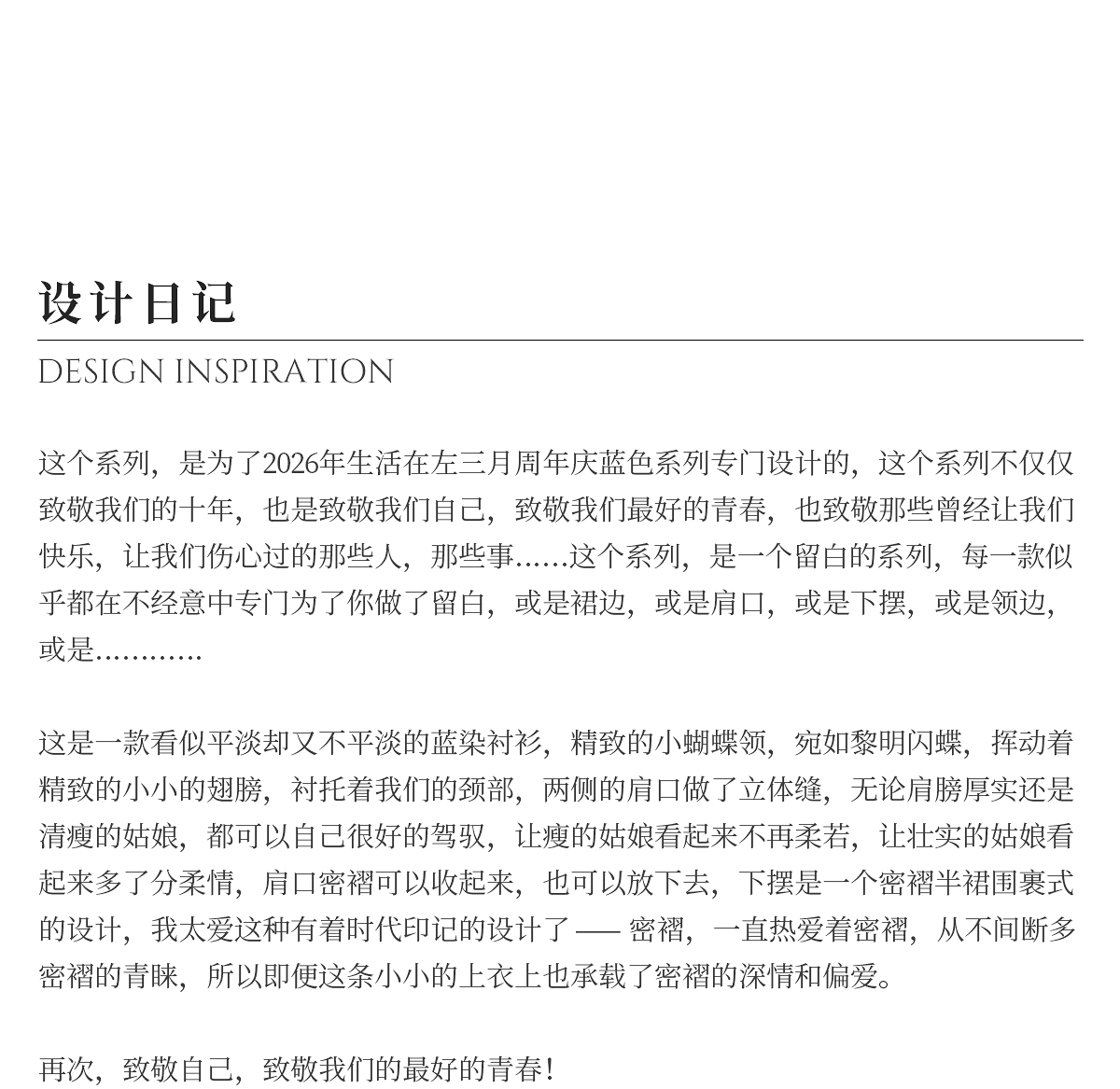 - hi~我是林栖 很高兴你也在关注和热爱着传统手工艺 我想让你穿上 用传统手工艺做出的、不输给国外奢侈品的衣服