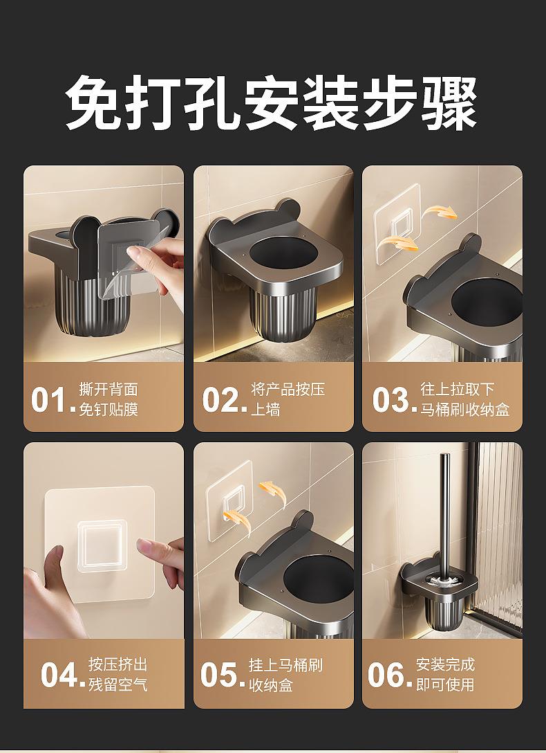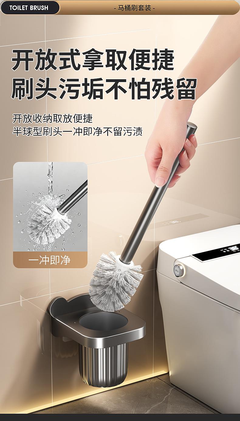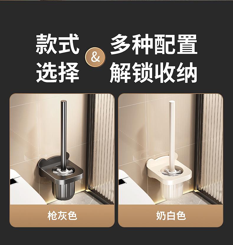 壁挂落地双用带座马桶刷免打孔防水防潮卫生间浴室长柄清洁刷子