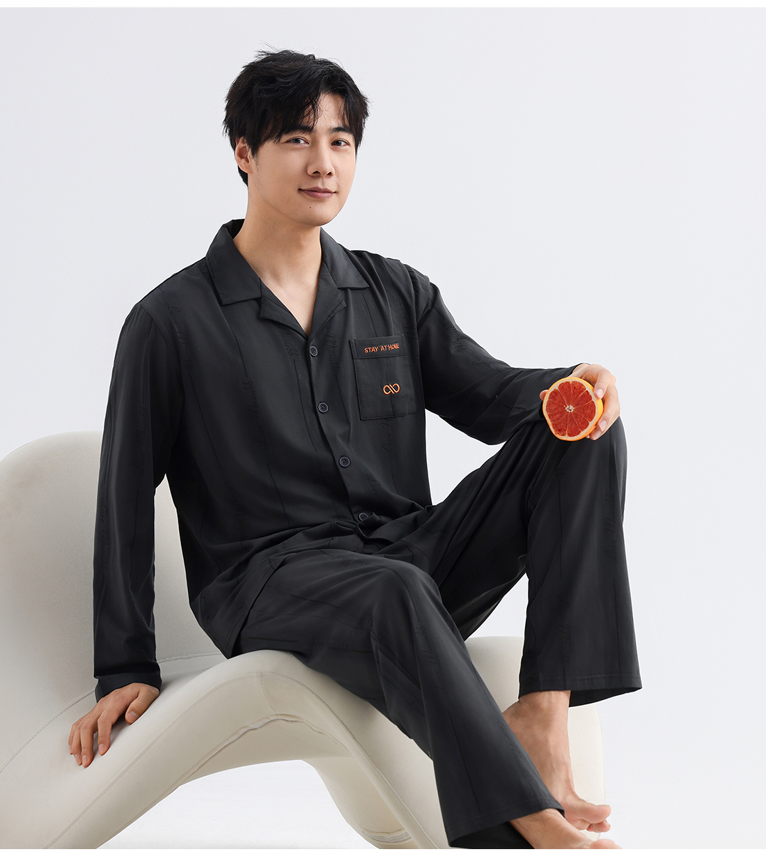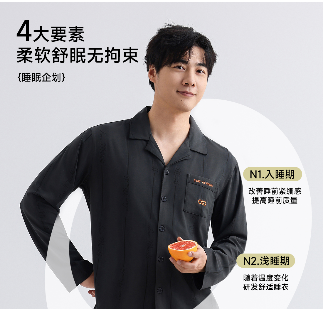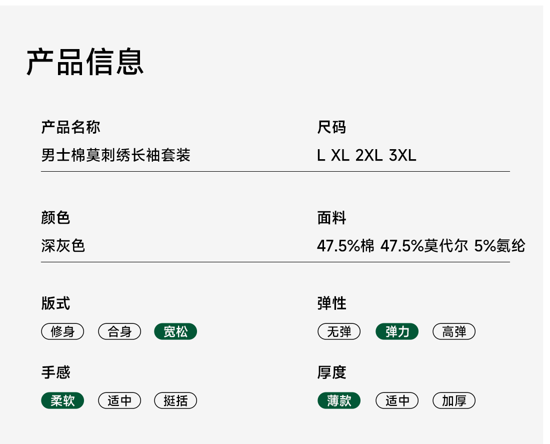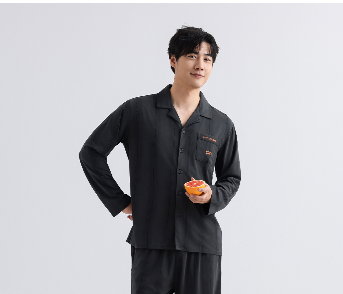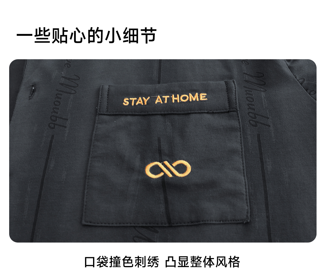 美季美优男士棉莫刺绣长袖套装
