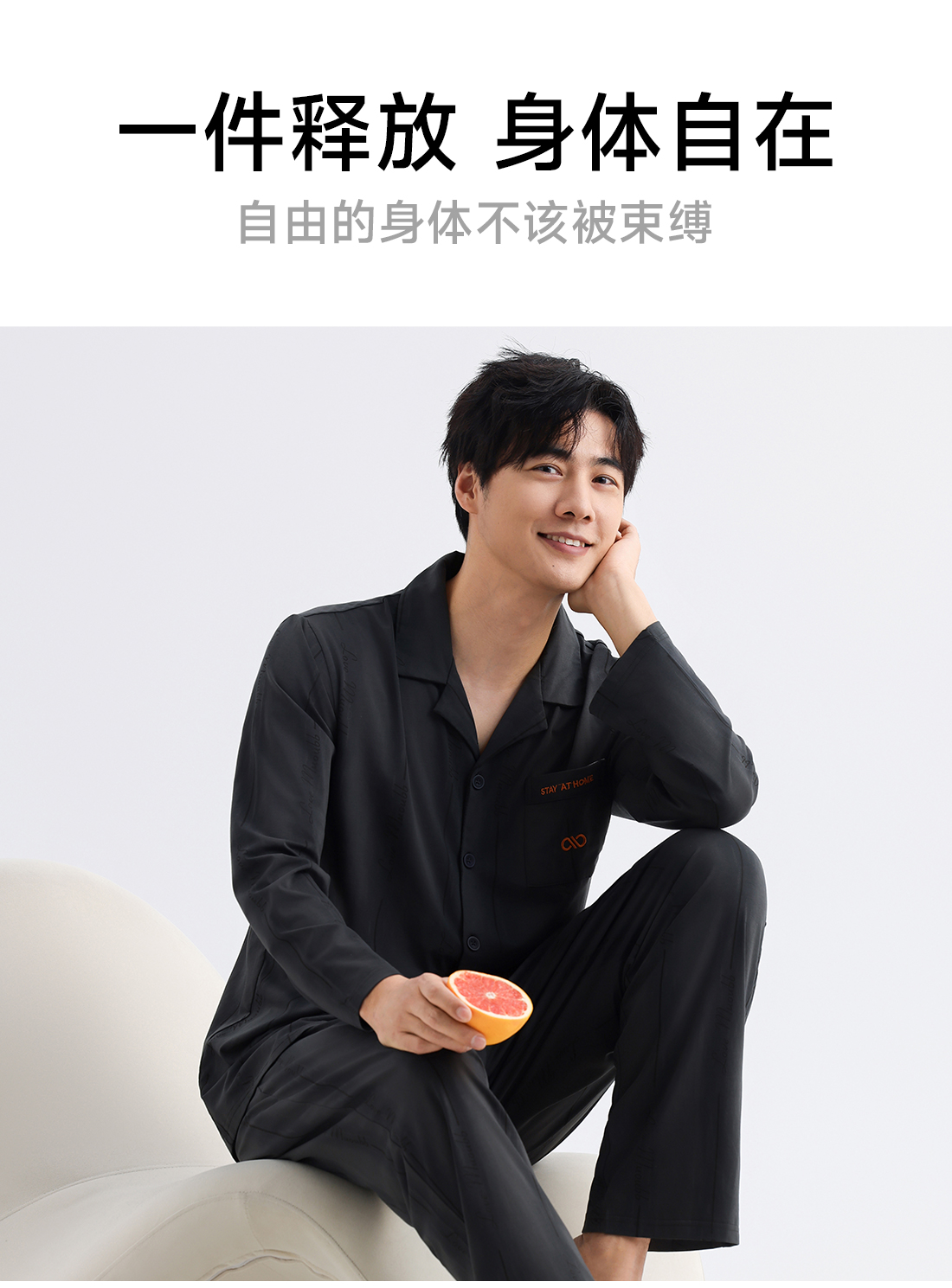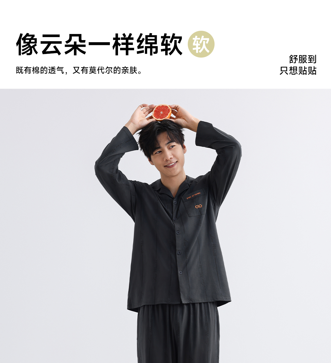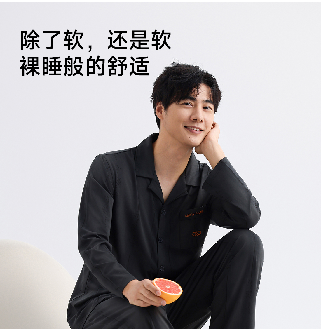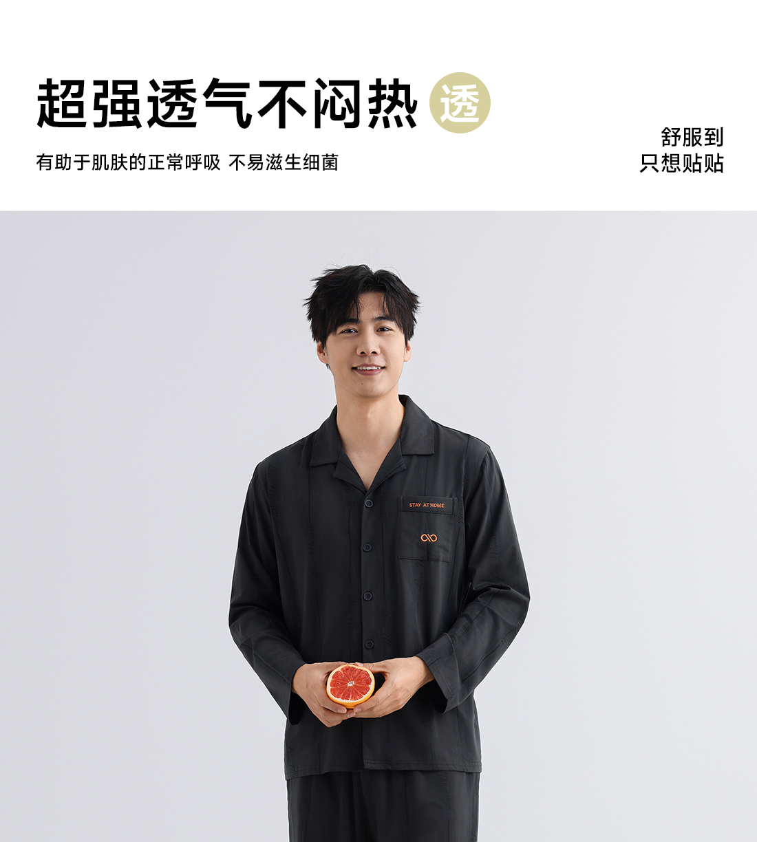 美季美优男士棉莫刺绣长袖套装